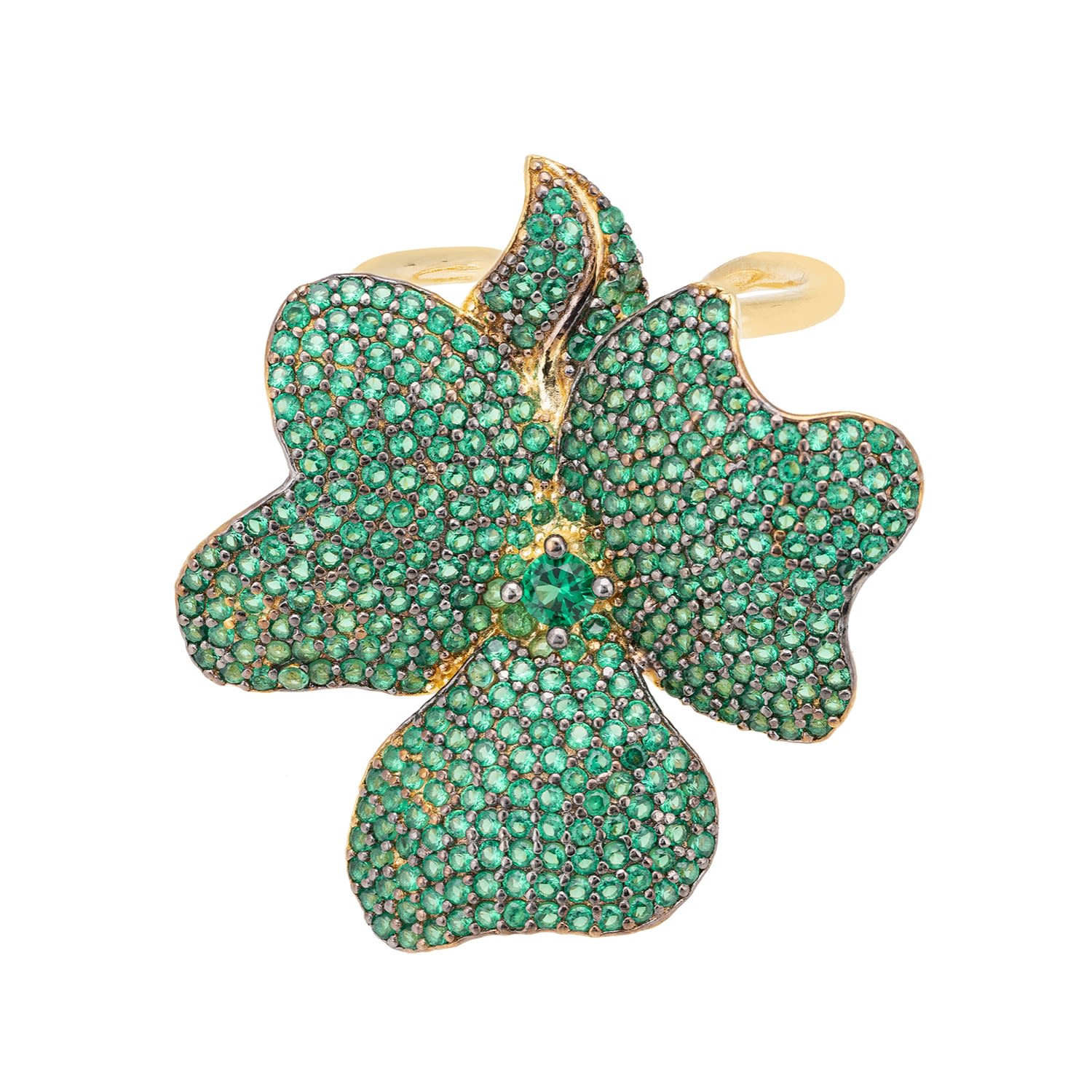 Flower Cocktail Ring Gold Emerald Green