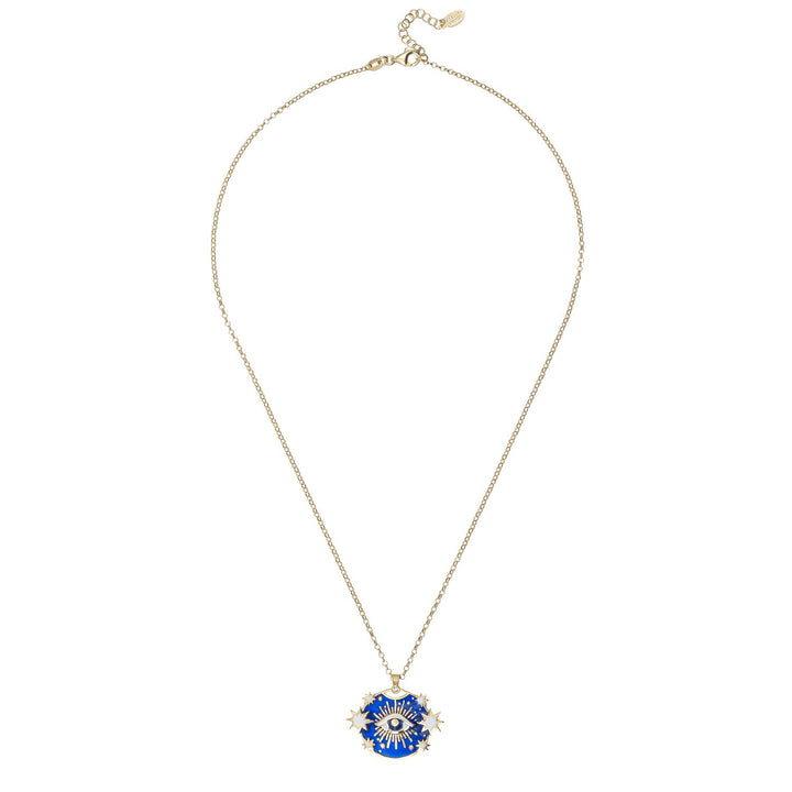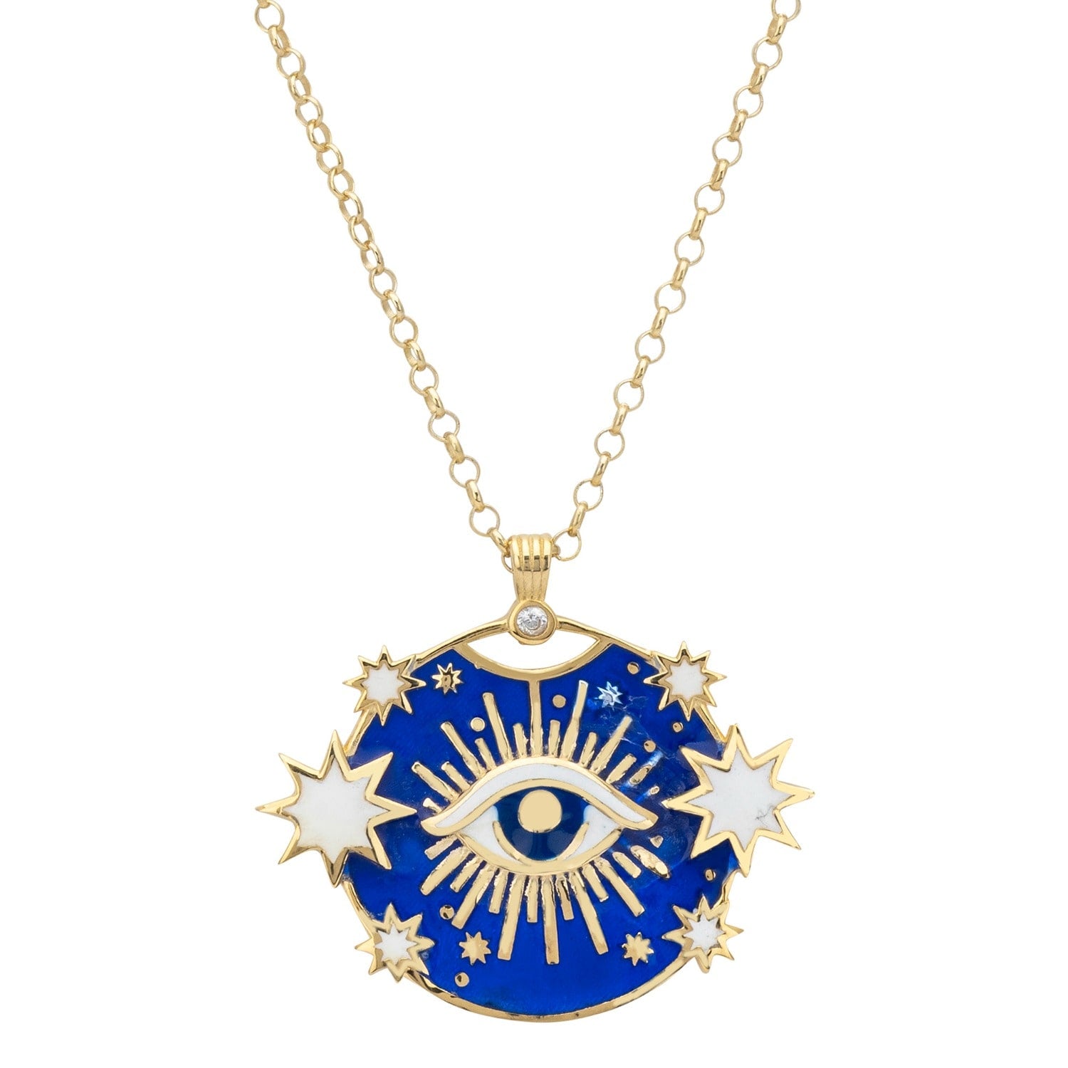 Celestial All Seeing Eye Necklace Blue Enamel Gold