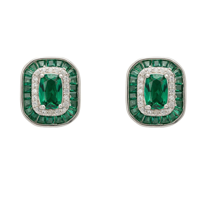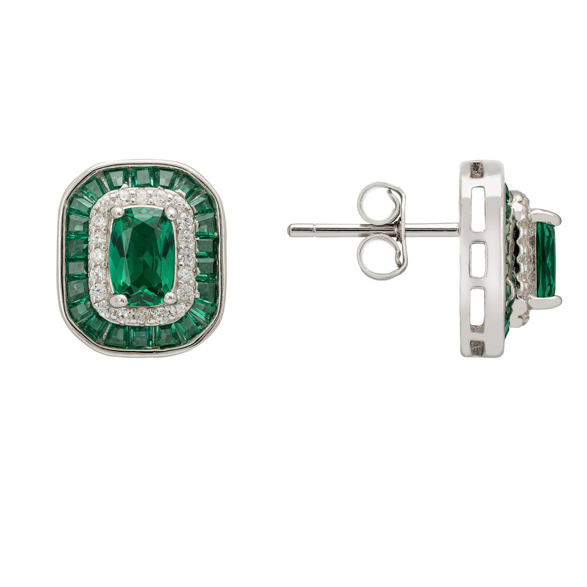 Handcrafted from 925 sterling silver, these stud earrings feature lab-created emeralds and cubic zirconia.