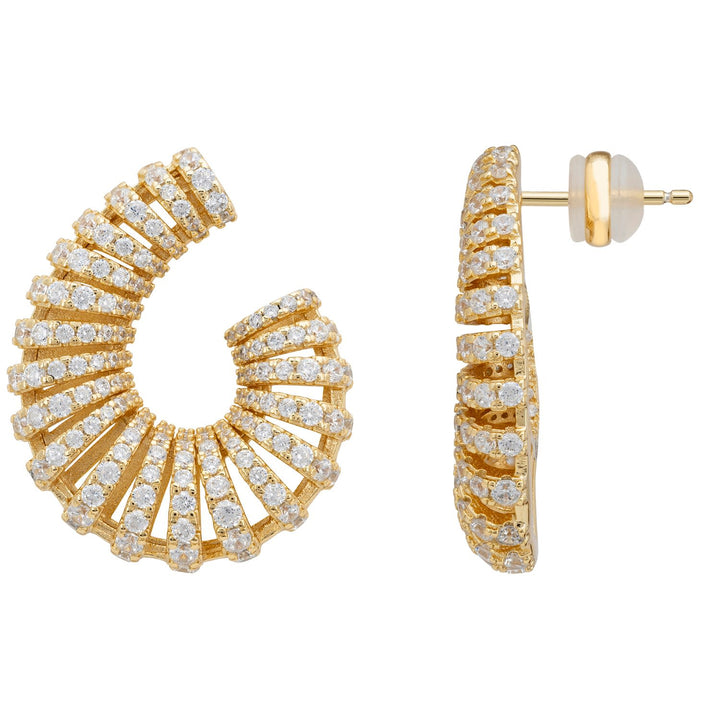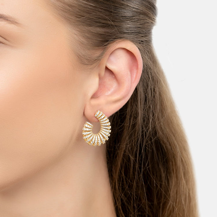 These hoops are handcrafted from 925 sterling silver dipped in 18ct gold and adorned with cubic zirconia.