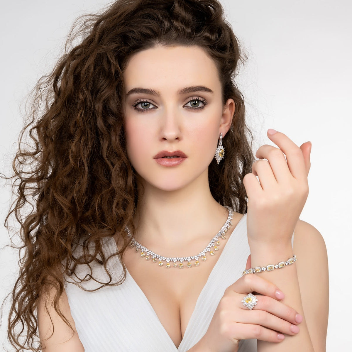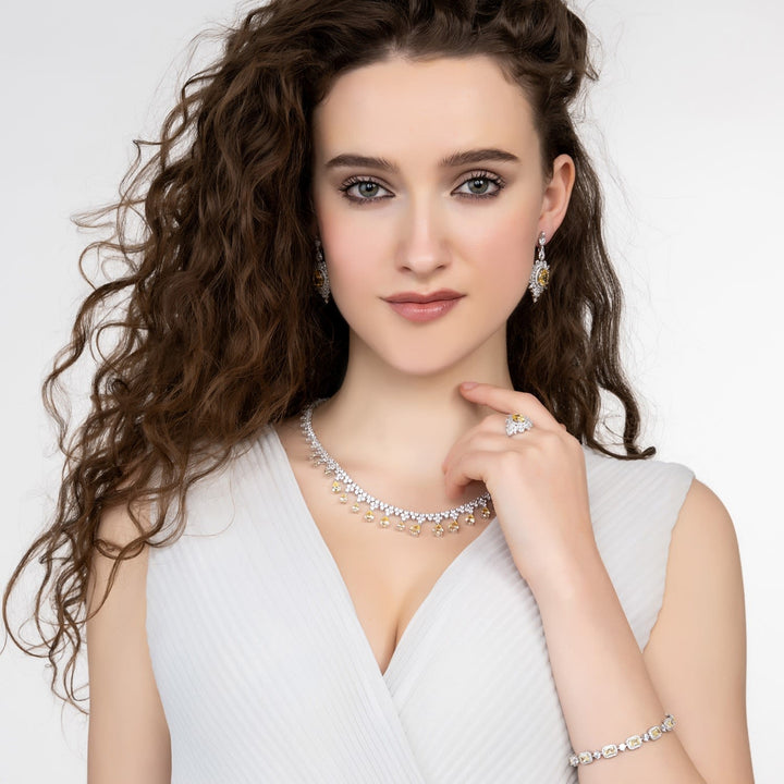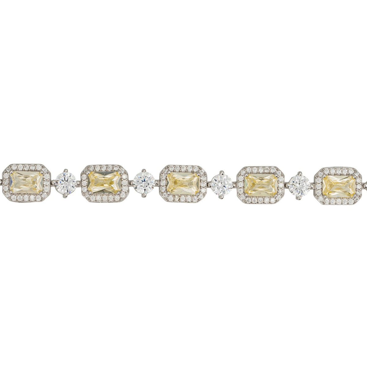 Handcrafted from 925 sterling silver, this bracelet features 12 lab-created lemon topaz gemstones and cubic zirconia.