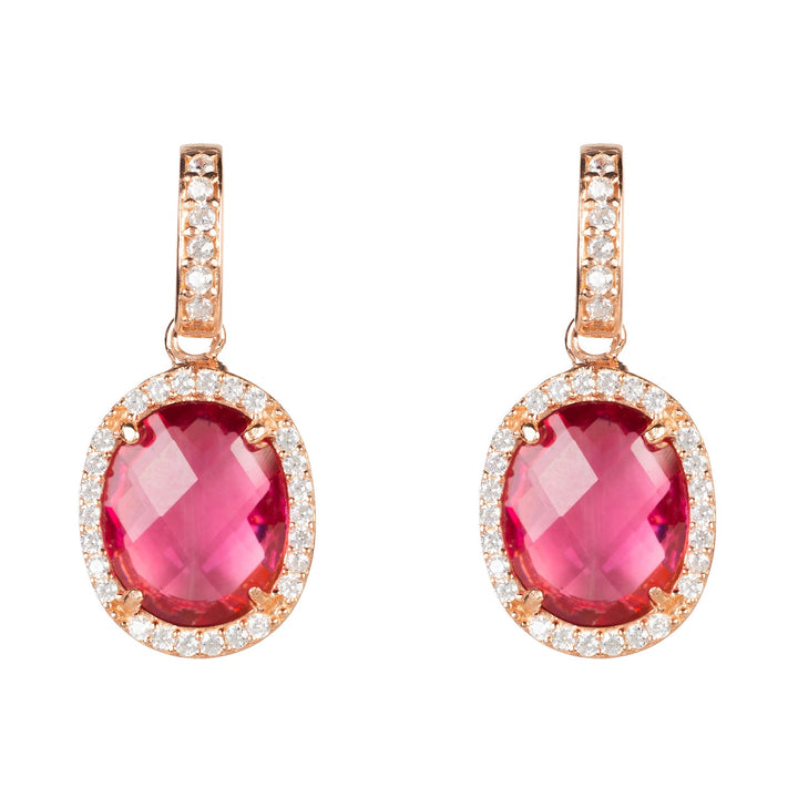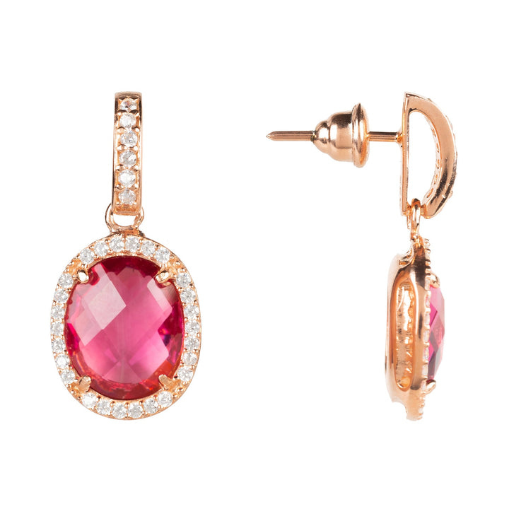 Beatrice Oval Gemstone Drop Earrings Rose Gold Pink Tourmaline