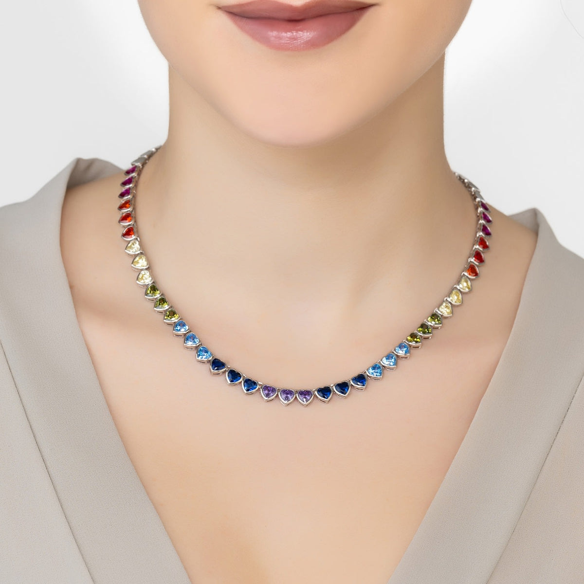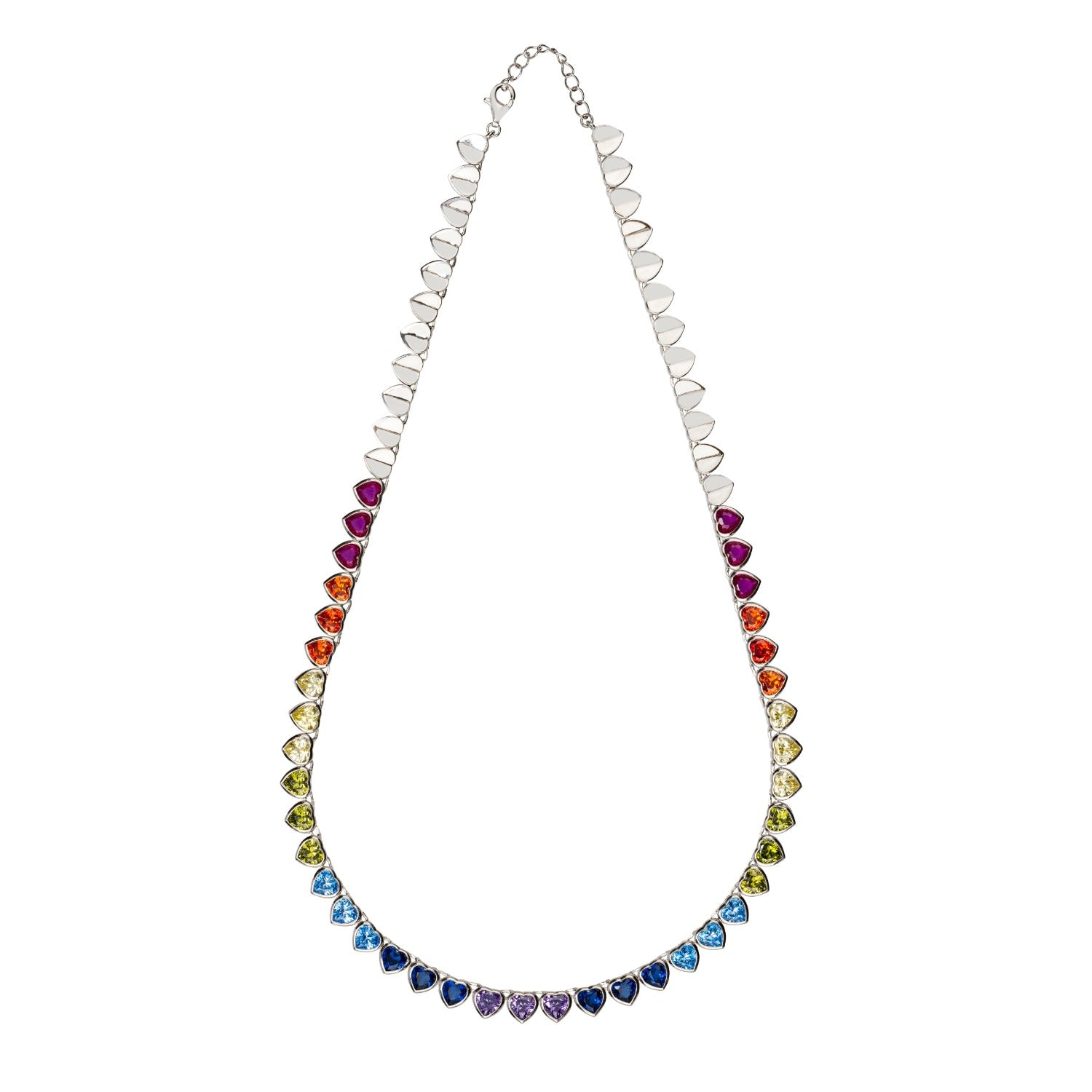 Heart Garland Rainbow Gemstone Necklace Silver