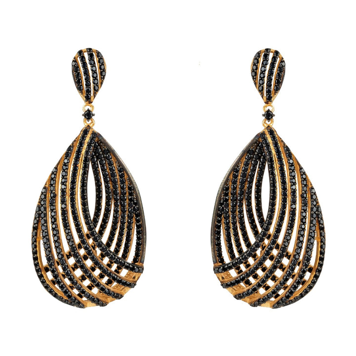 Vortex Teardrop Clip On Earrings Gold Black Cz
