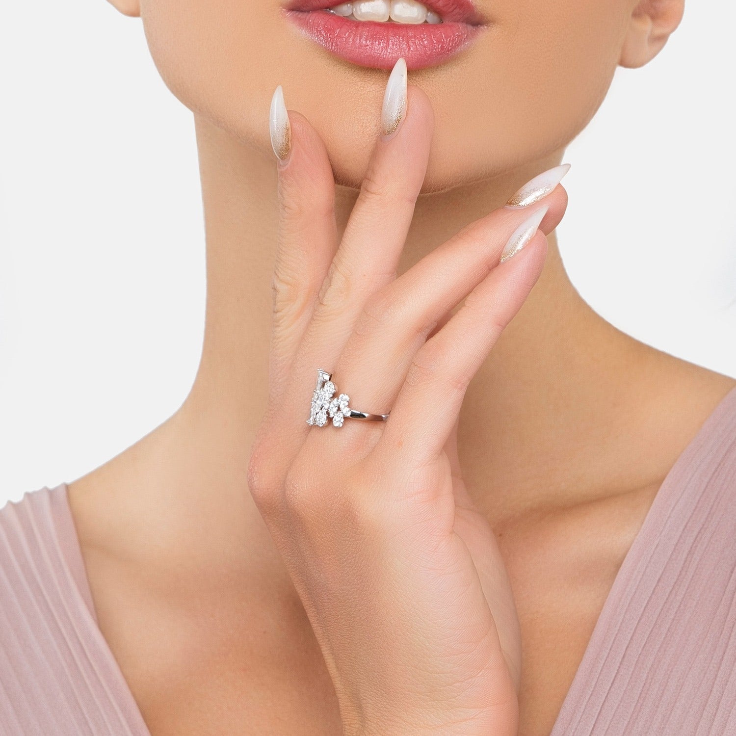 Duchess Moissanite Cocktail Ring Silver