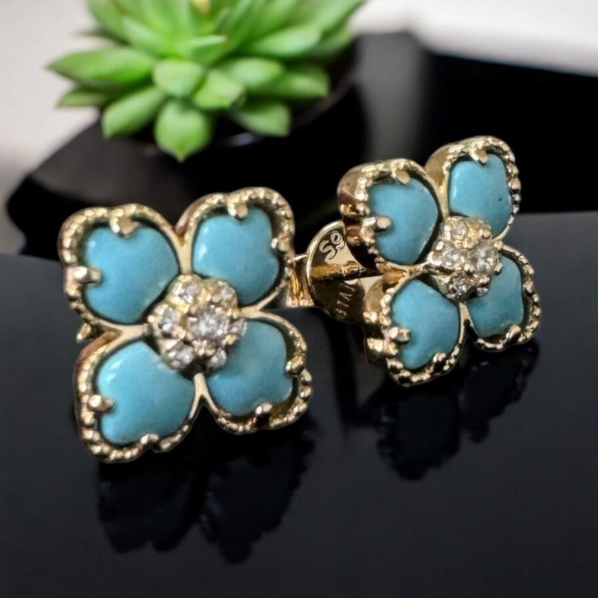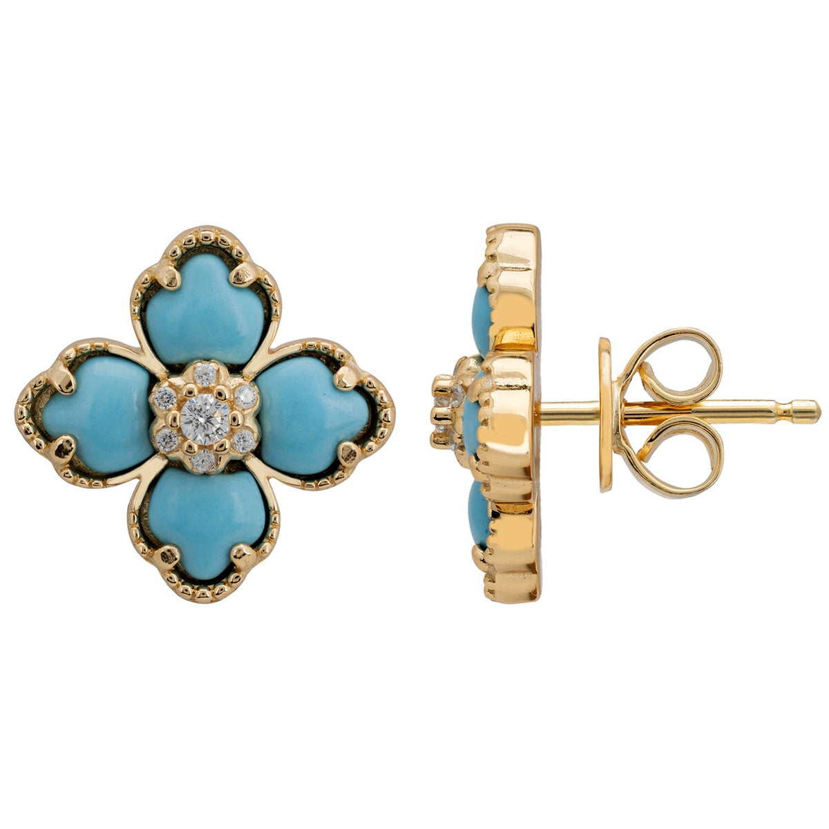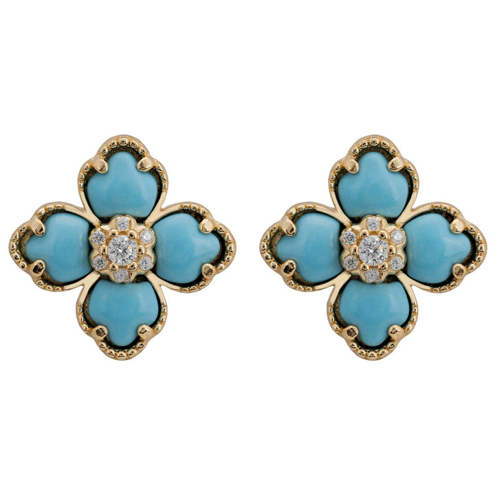 Flower Clover Turquoise Stud Earrings Gold