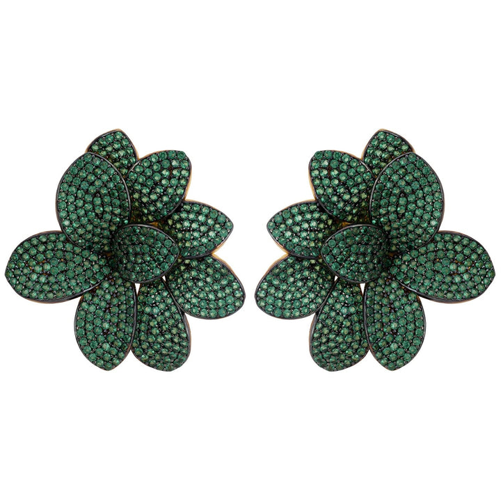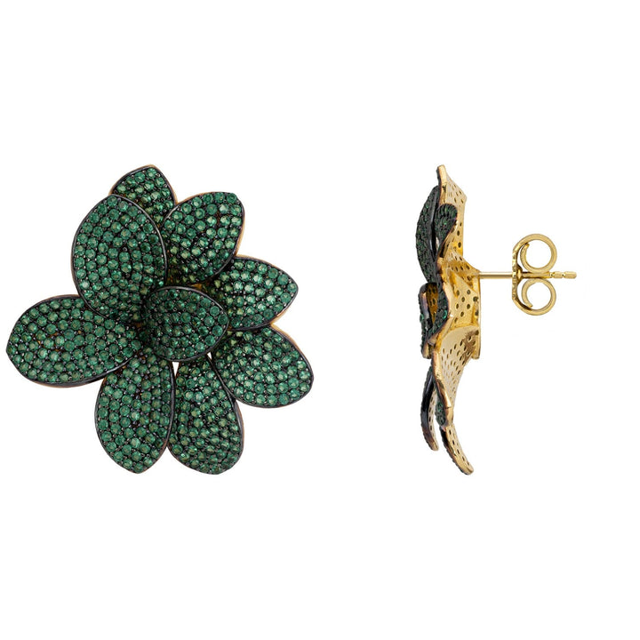 Amaryllis Flower Large Stud Earrings Gold Emerald