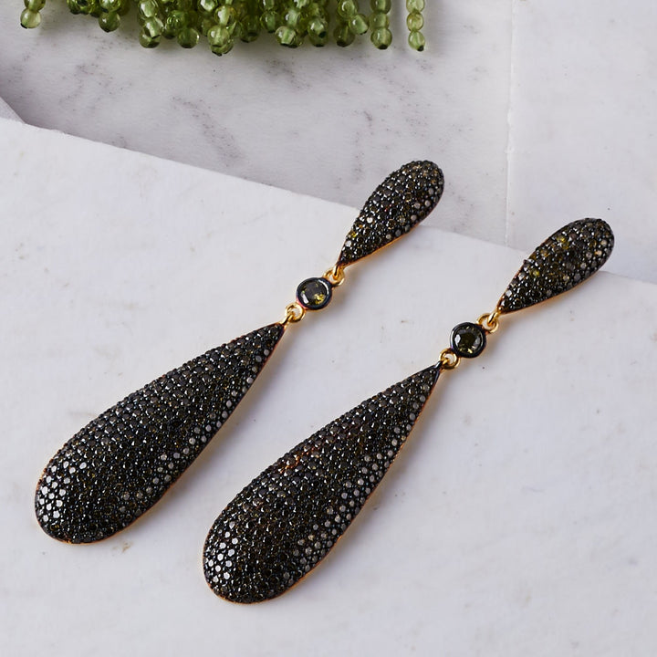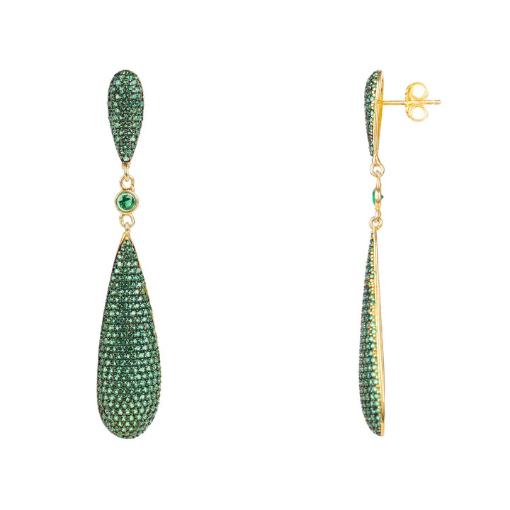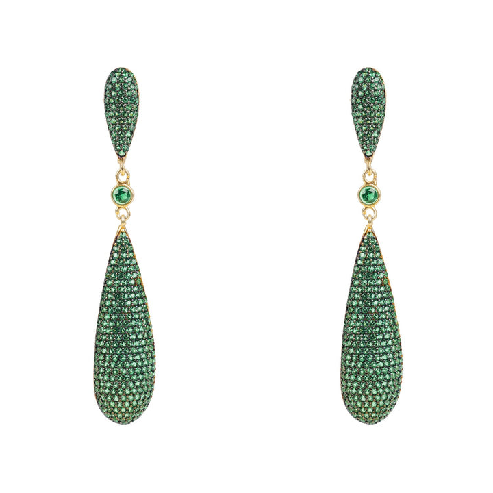 Coco's Long Drop Earrings Emerald Green Cz
