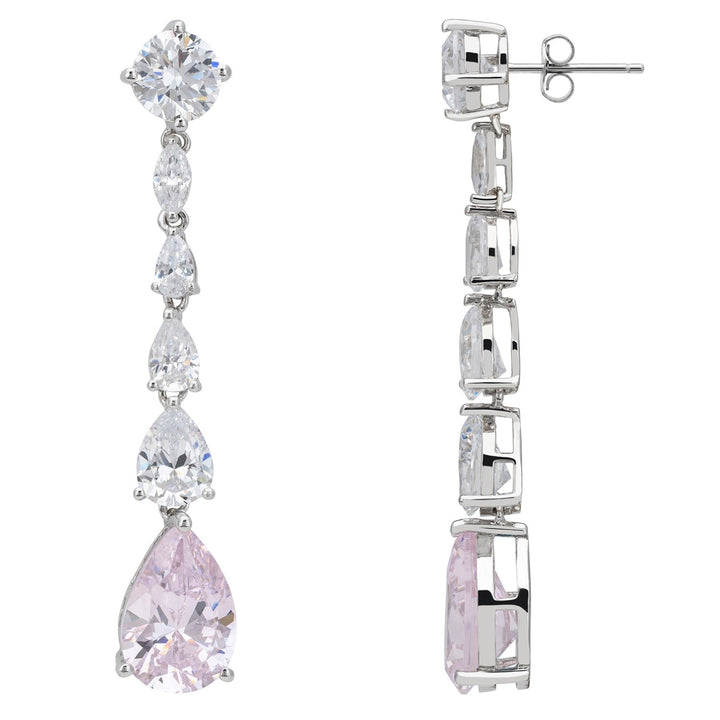 These earrings are handcrafted from 925 sterling silver and feature a lab-created morganite and simulated diamonds.