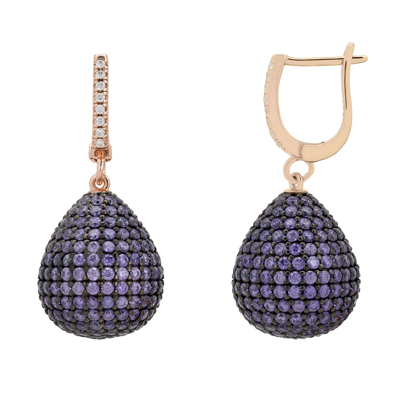 Valerie Pear Drop Gemstone Earrings Rosegold Purple Amethyst Cz