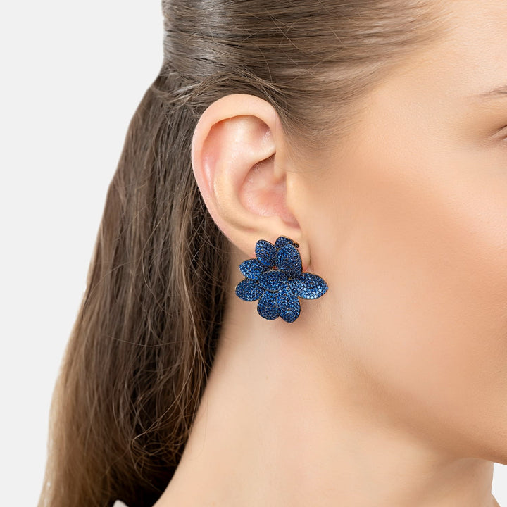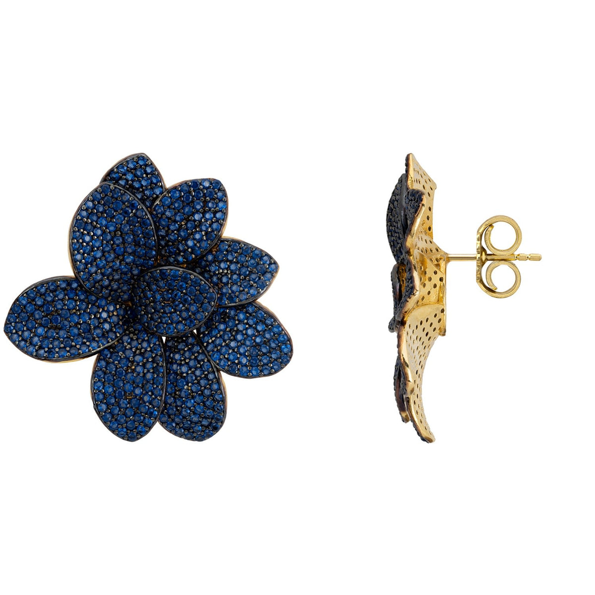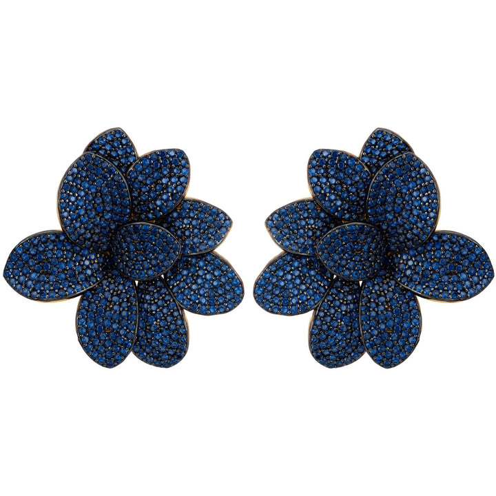 Amaryllis Flower Large Stud Earrings Gold Sapphire