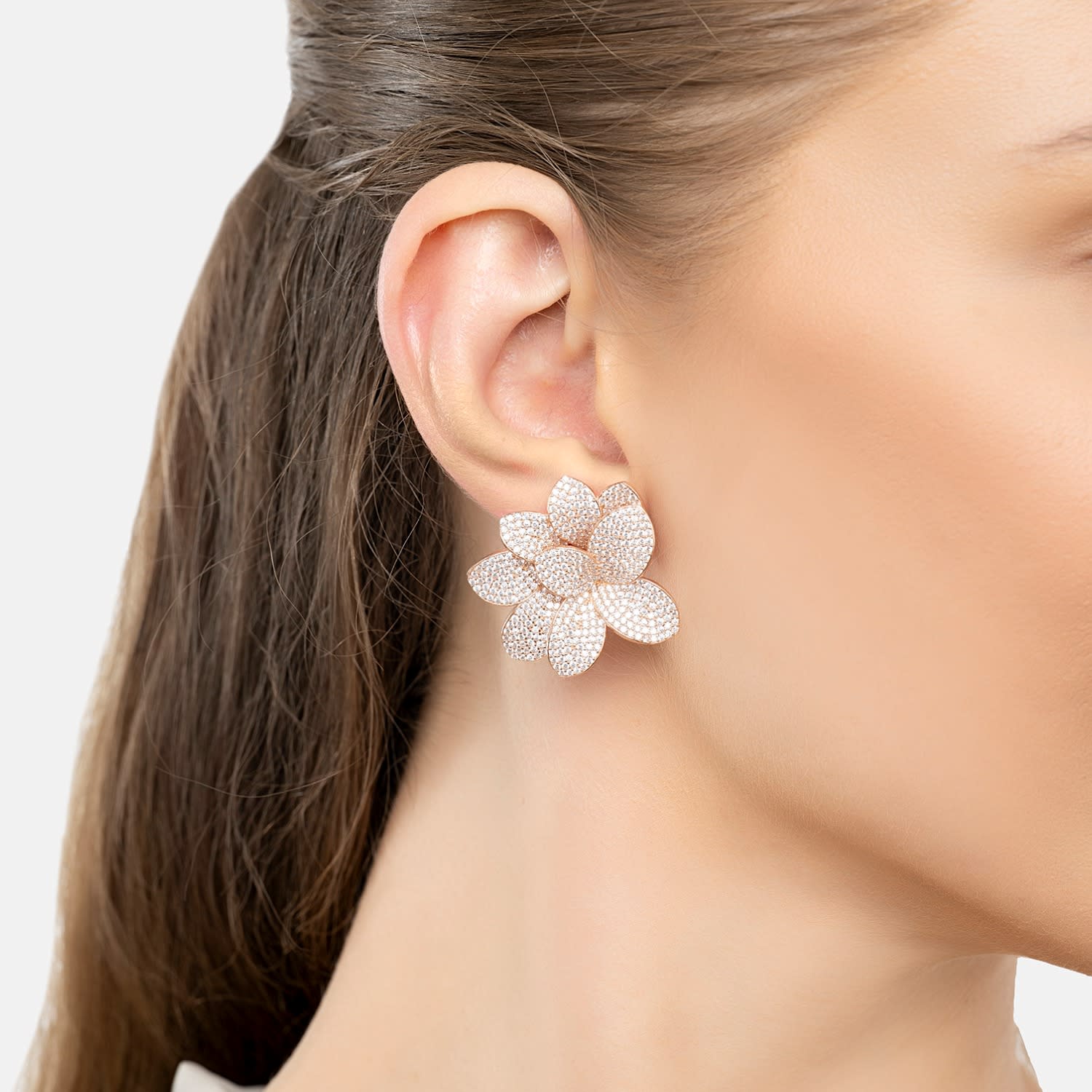 These Amaryllis Flower Large Stud Earrings Rosegold by Latelita are a graceful and radiant accessory. Sculpted in the image of a blooming amaryllis, these studs capture the essence of timeless elegance, with each petal encrusted in sparkling white cubic zirconia. Finished in a warm rose gold, they flatter every skin tone. These earrings are an exceptional choice for bridal wear or any celebration, effortlessly adding a luminous touch to your most cherished moments.