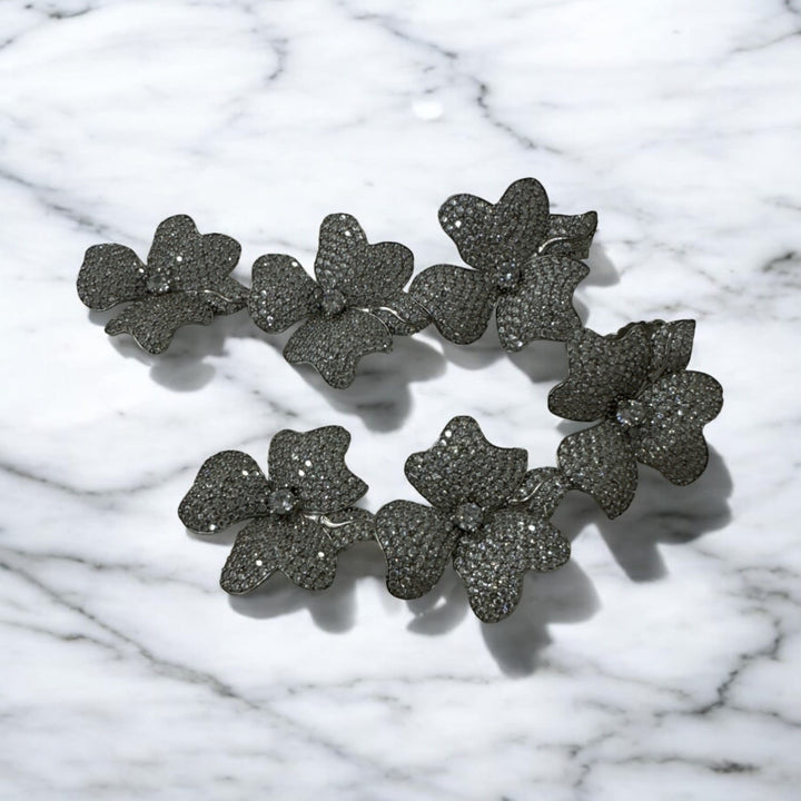 These Jasmine Flower Triple Drop Earrings Silver by Latelita are ideal for those who love statement jewelry with added sparkle. The floral-inspired design features three equally sized flowers linked together to create a long, elegant drop. Adorned with sparkling cubic zirconia, these earrings add a touch of elegance and sophistication to any outfit. Despite their size, they are lightweight and comfortable to wear, making them perfect for every evening and black-tie event.