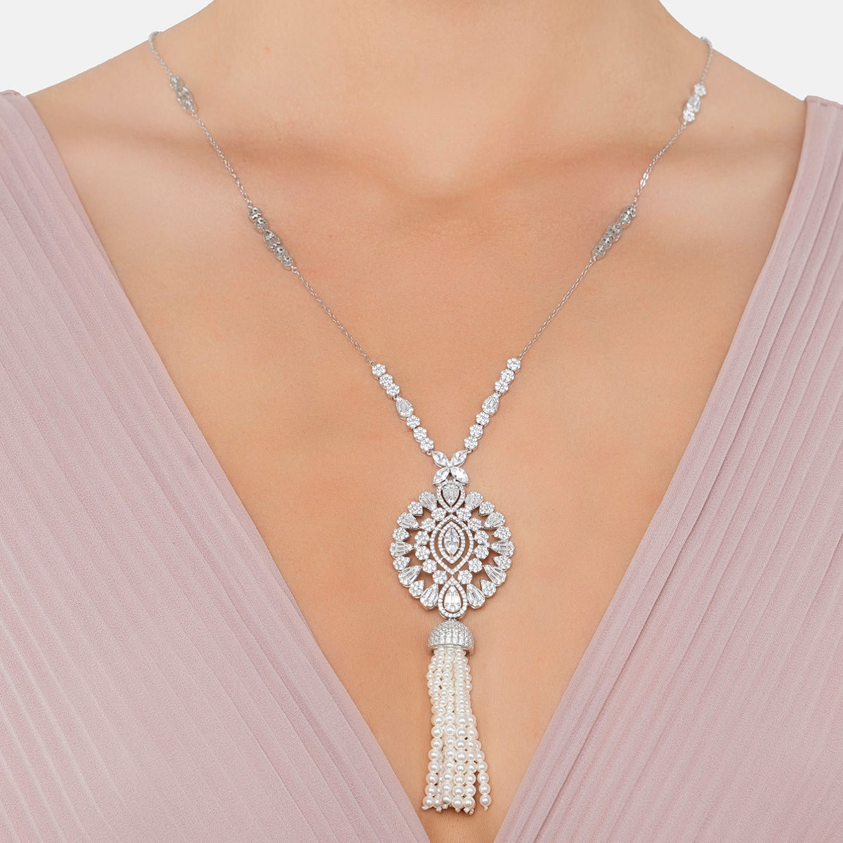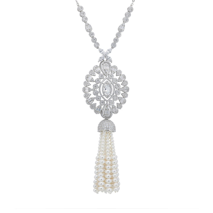 Zahara Pearl Tassel Pendant Necklace Silver