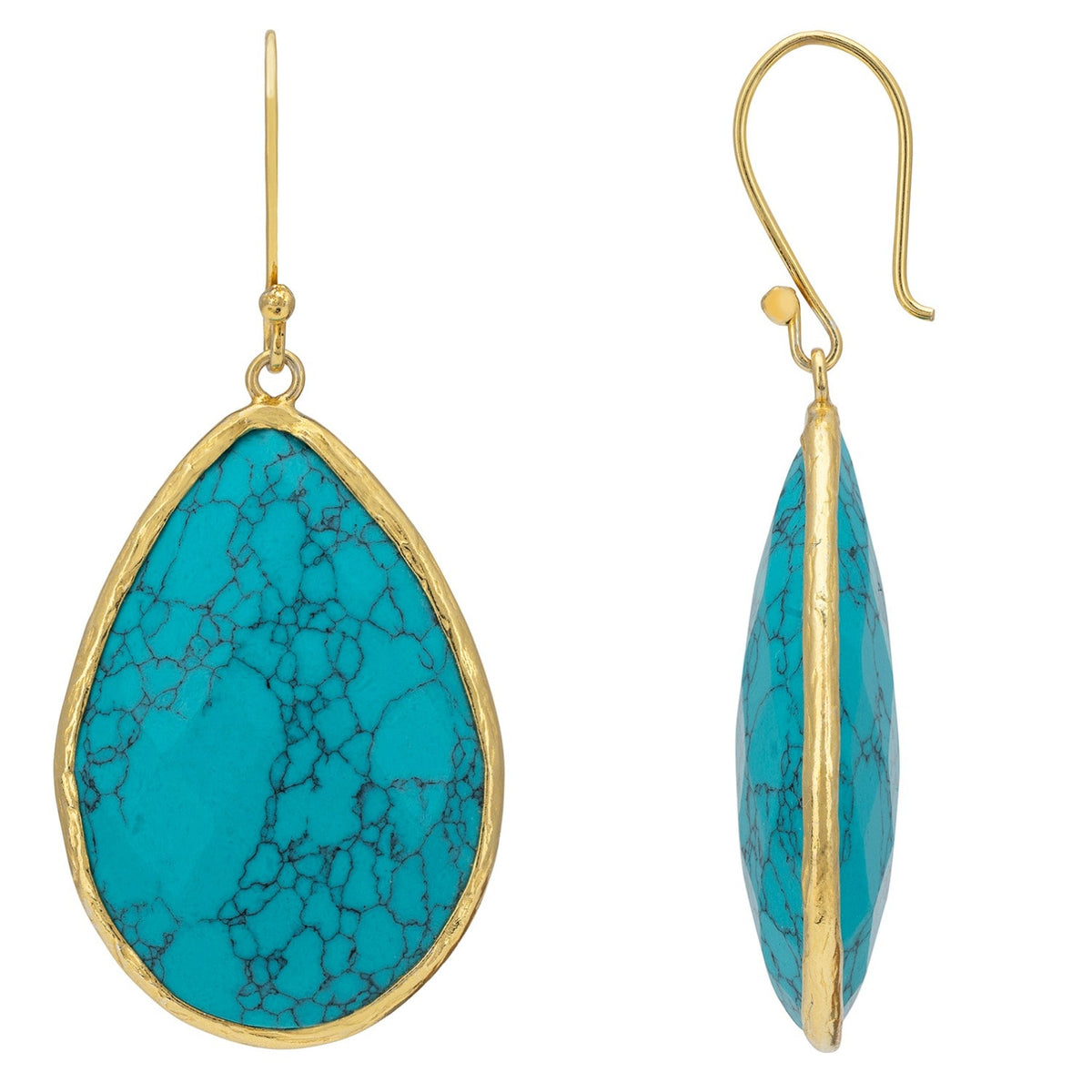 These drop earrings are handcrafted from .925 sterling silver dipped in 18ct gold and feature turquoise gemstones.