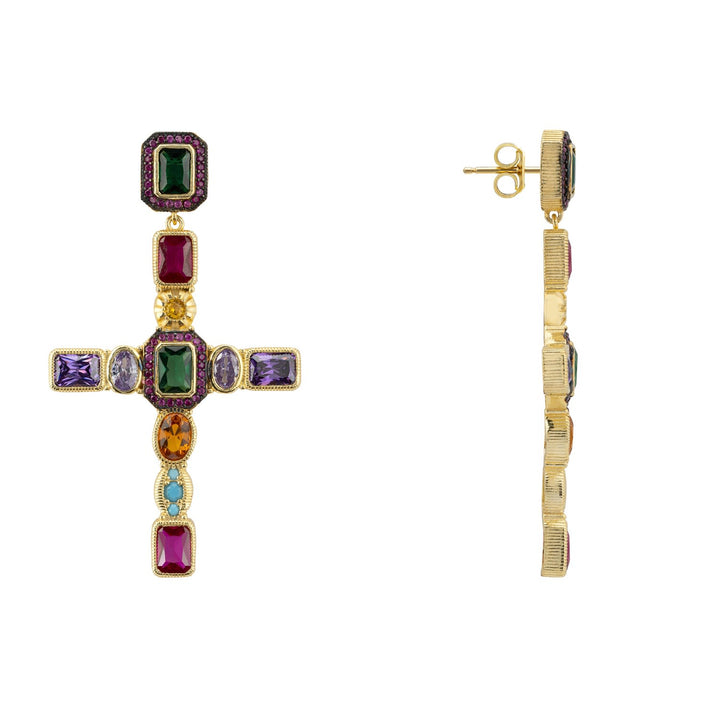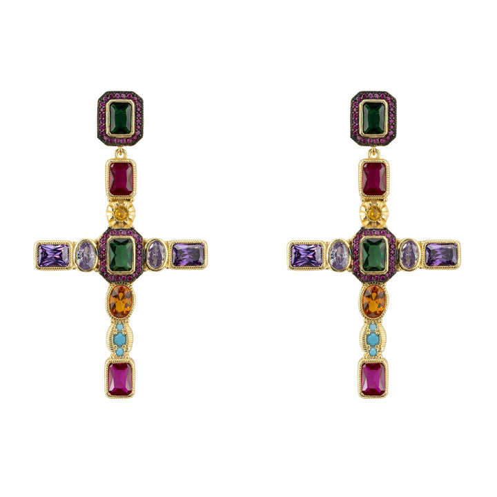 Santa Maria Extra Large Gemstone Cross Earrings Gold