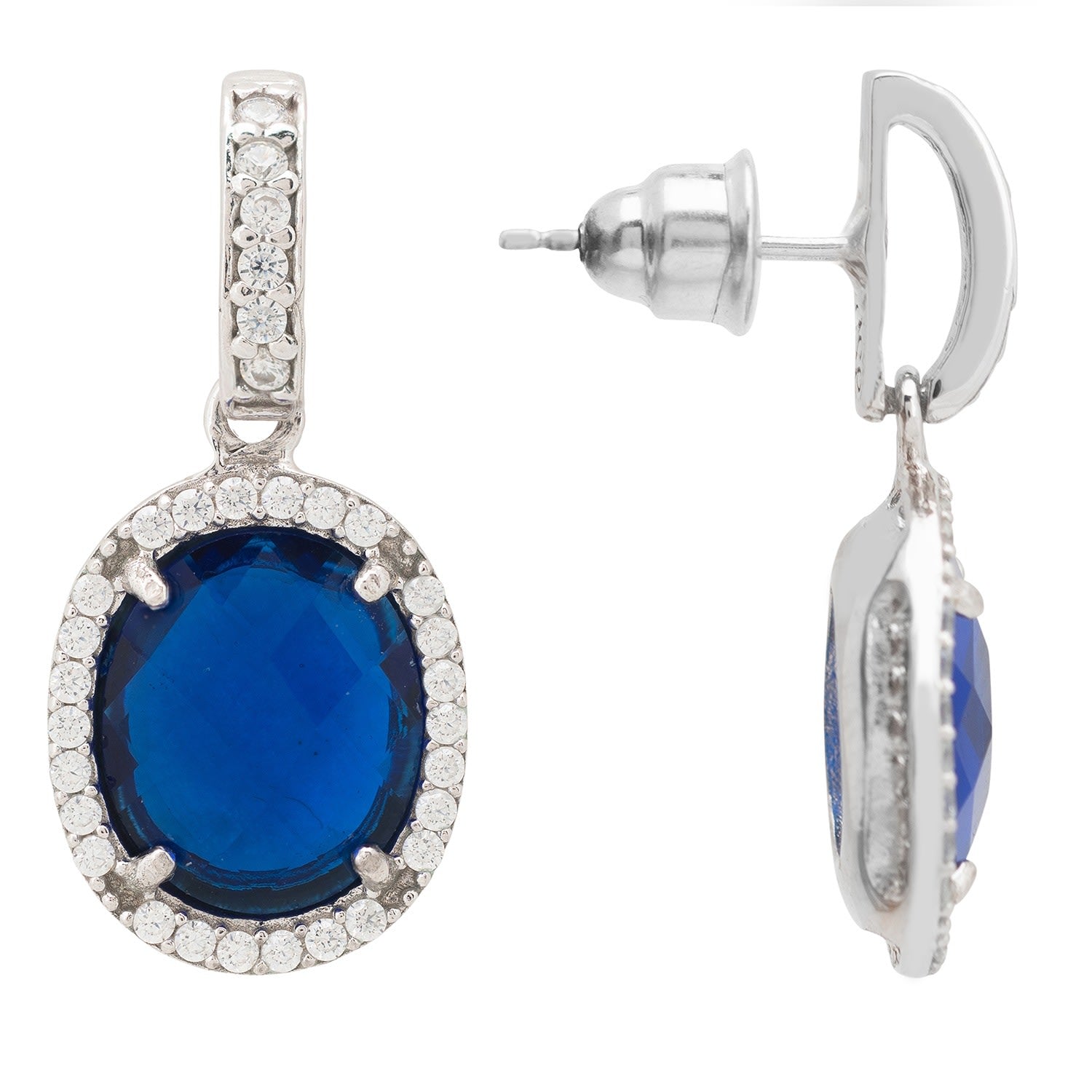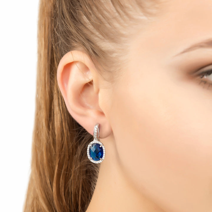 The Beatrice Oval Gemstone Drop Earrings are an exquisitely regal and elegant design. The multifaceted sapphire hydro gemstone, a birthstone for September, is highlighted by lustrous cubic zirconia detailing. These drop earrings are a perfect finishing touch for any evening attire, providing a super sparkly effect that dazzles from day to night.