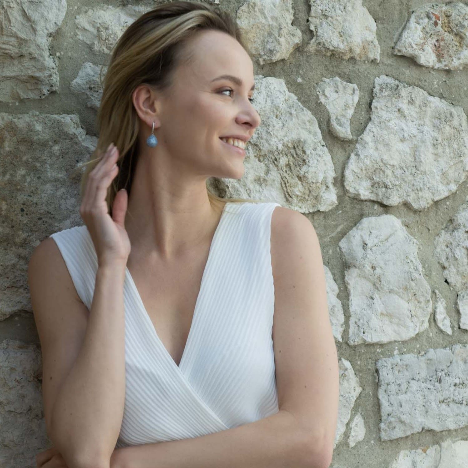 Valerie Pear Drop Gemstone Earrings Silver Ice Blue