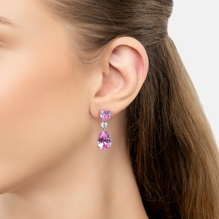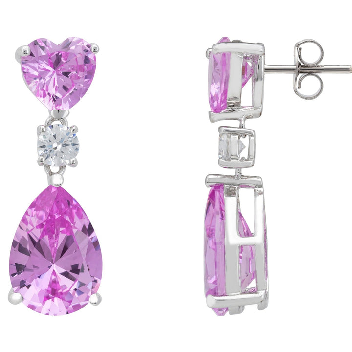 The Irina Morganite Teardrop Earrings are a gorgeous pair that symbolizes eternal love and inner strength. They feature two lab-created morganite gemstones (one pear-shaped and one heart-shaped) and a simulated diamond. Handcrafted in 925 sterling silver, these earrings provide an abundance of sparkle and are perfect for expressing commitment and devotion.