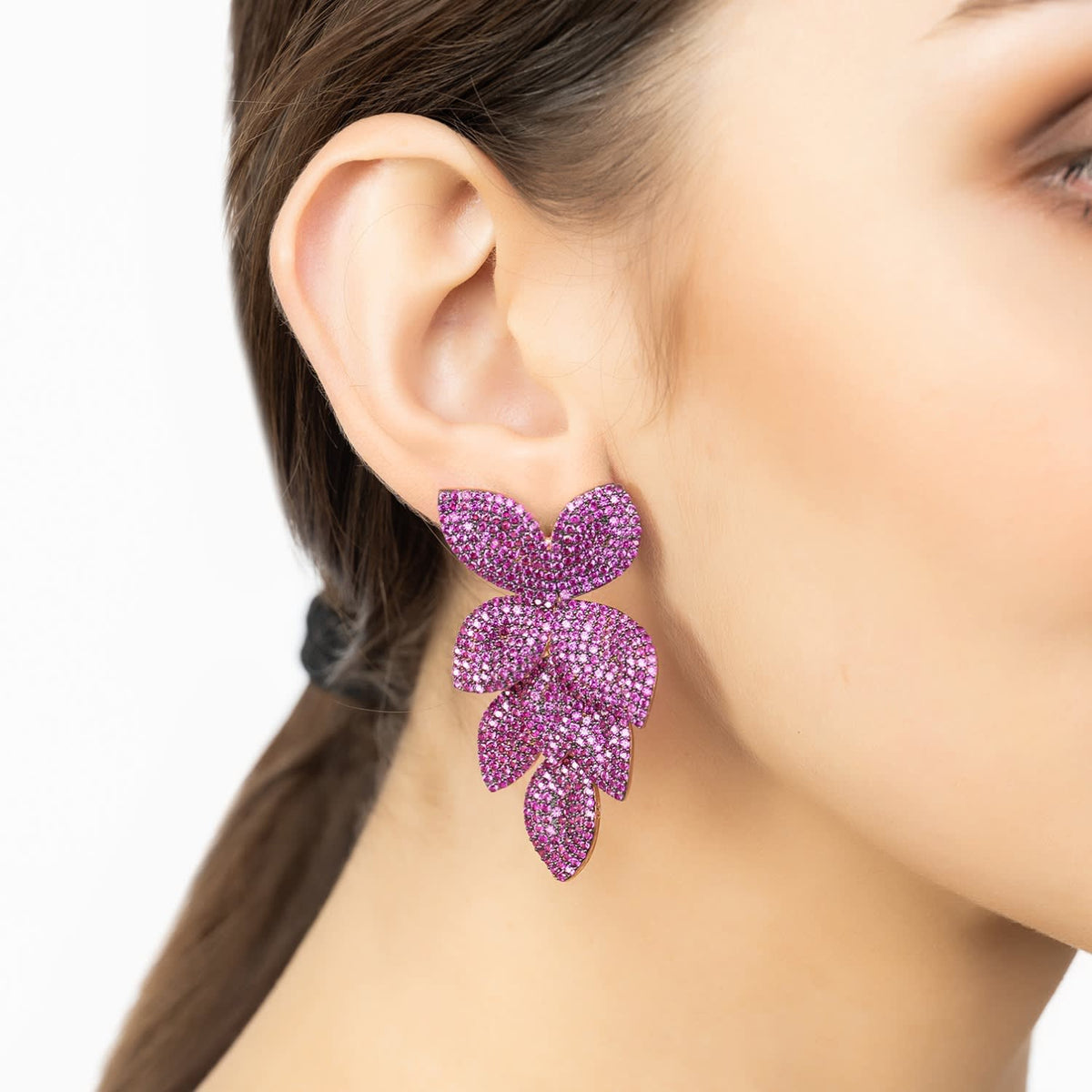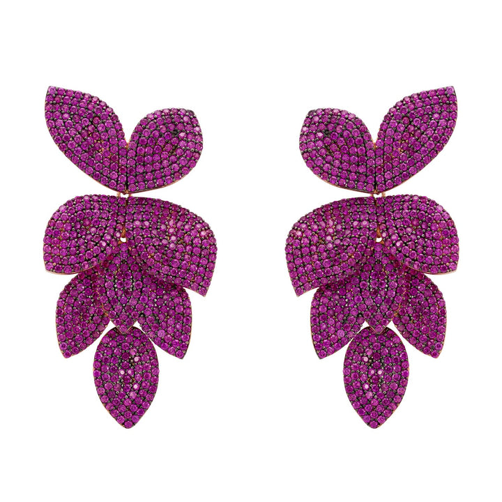 Petal Cascading Flower Clip On Earrings Rosegold Ruby Cz