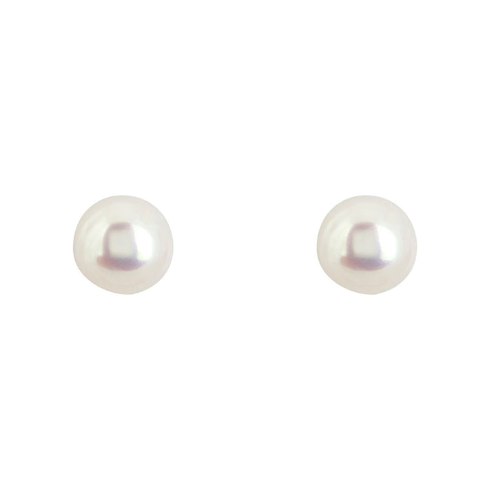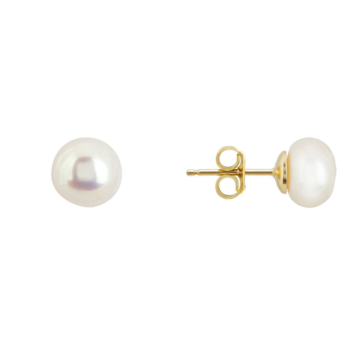 Solid 14K Gold 8Mm Classic Natural Pearl Stud Earrings