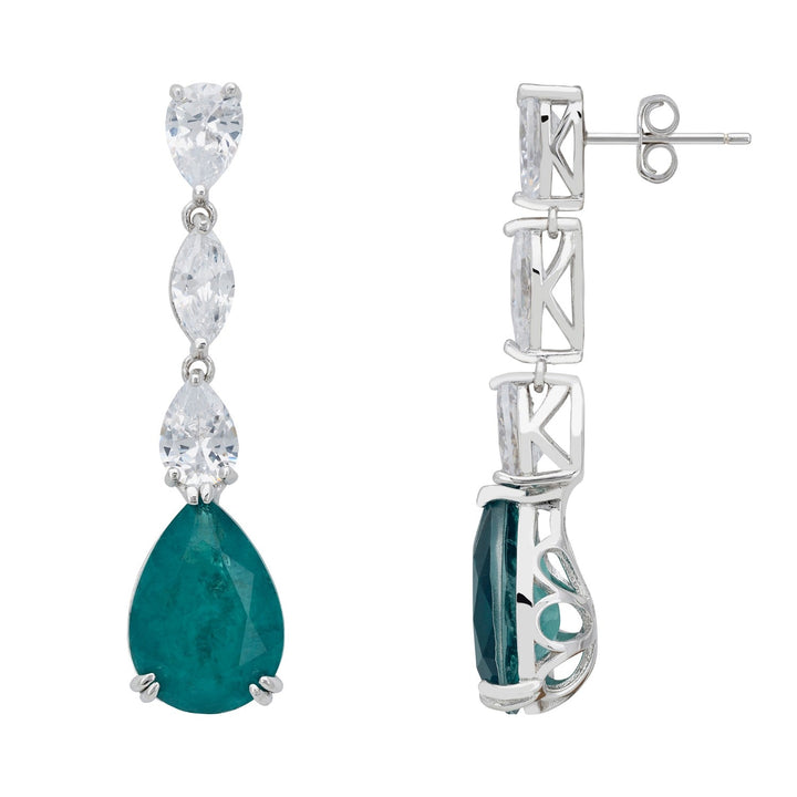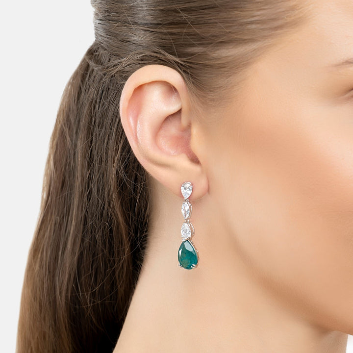 These Keira Colombian Emerald Drop Earrings by Latelita are a masterpiece of refined artistry and elegant design. The mesmerizing teardrop-shaped Colombian emerald, suspended from a shimmering trio of marquis-cut simulated diamonds, creates a harmonious blend of color and sparkle. These earrings are a symbol of sophisticated beauty and make a deeply meaningful gift for a May birthday or a 55th wedding anniversary, celebrating love and significant milestones.