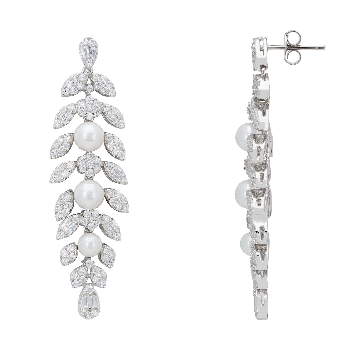 These earrings are handcrafted from 925 sterling silver and dipped in rhodium. They feature Majorica pearls and simulated diamonds. They are presented in Latelita London signature packaging.