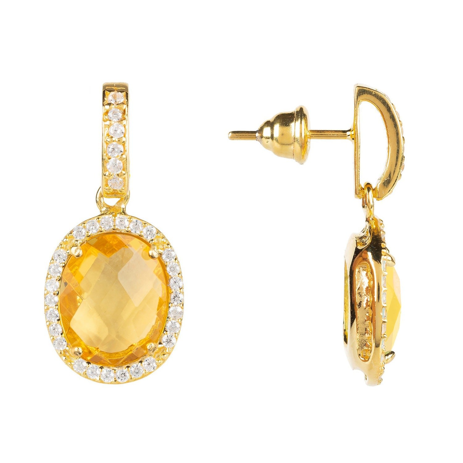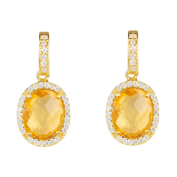 Beatrice Oval Gemstone Drop Earrings Gold Citrine Hydro
