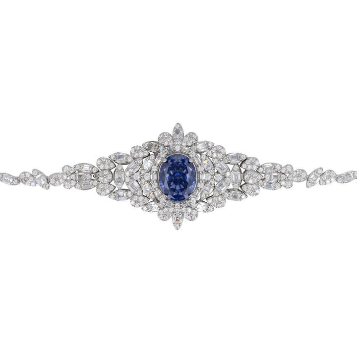 This Arabesque Splendor Bracelet Tanzanite Silver by Latelita combines bold color with timeless design. At its heart lies a glowing lab-created tanzanite in a delicate floral-inspired setting, framed by a line of sparkling simulated diamonds. Its graceful tennis bracelet style delivers effortless sophistication, while tanzanite brings symbolism of transformation and strength. A dazzling piece to elevate any wrist.