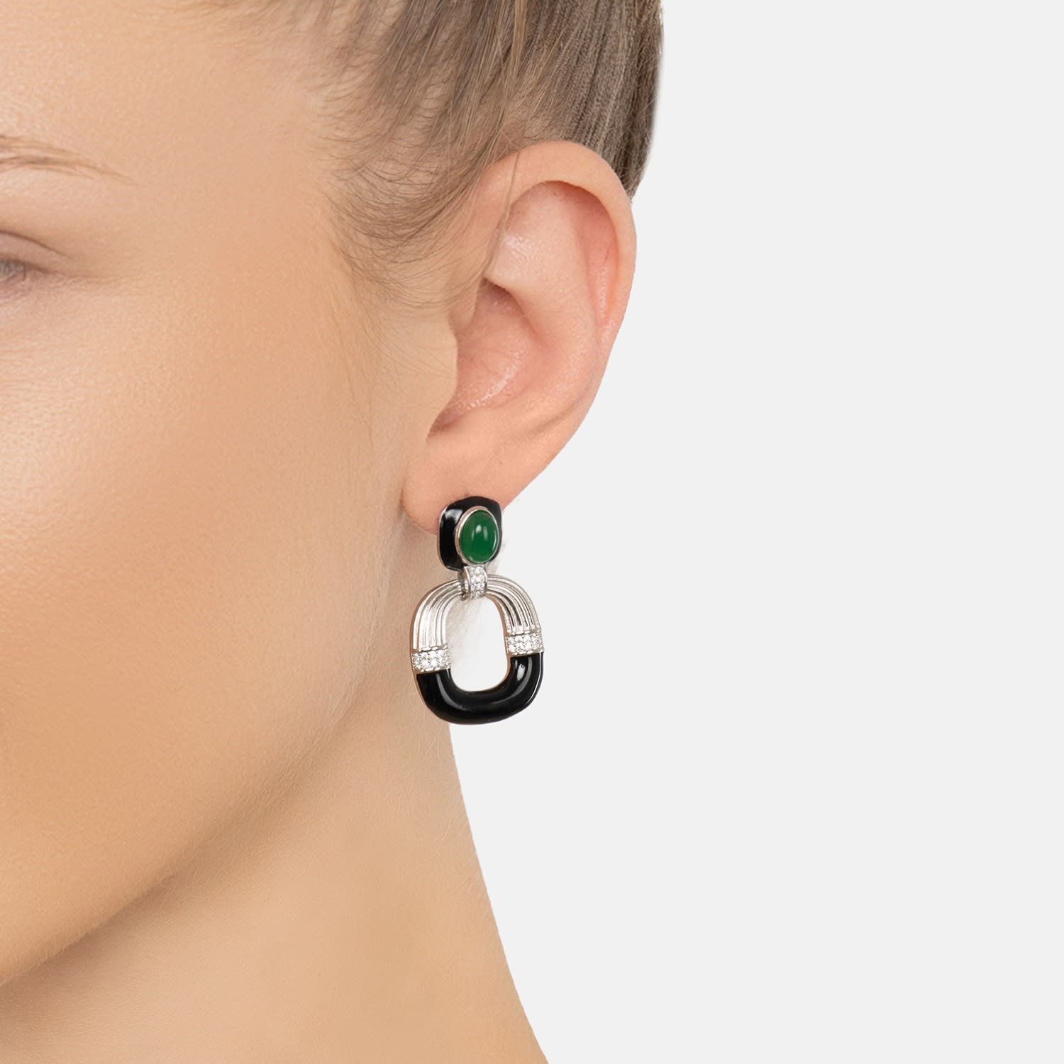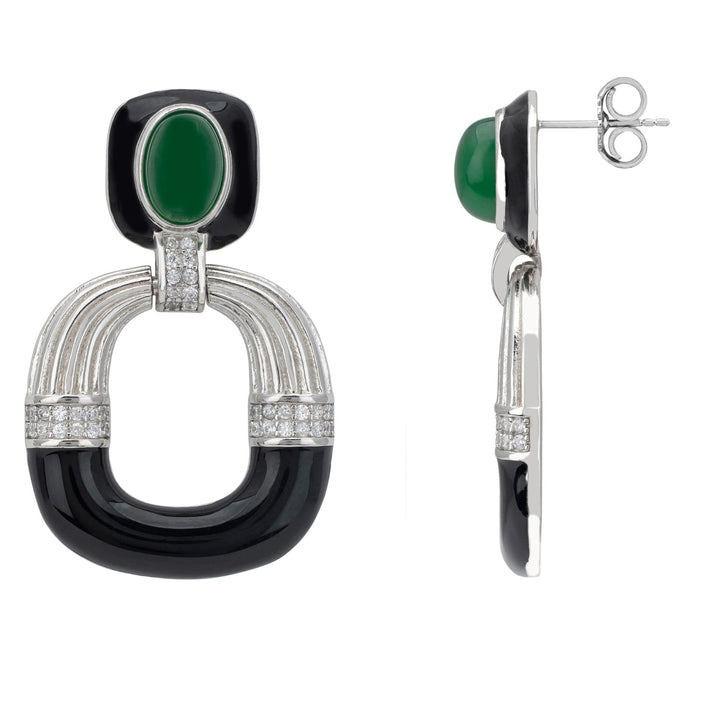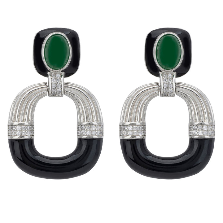 These Deco Darling Drop Earrings Green Enamel Silver by Latelita transport you to the glamour and geometric elegance of the 1920s. With rich green and black enamel, a mix of textures, and sparkling zirconia accents, these earrings balance vintage sophistication with a modern edge. Their architectural form and fluid movement make them ideal for evening wear and statement styling.
