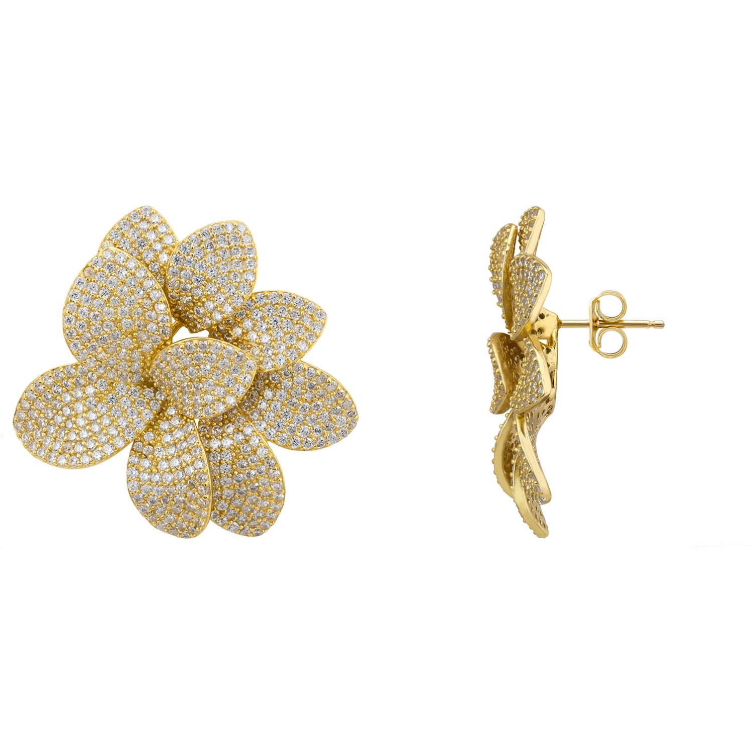 The Amaryllis Flower Large Stud Earrings by Latelita are a dazzling statement piece. Crafted to perfection from 925 Sterling Silver and dipped in 18ct gold, each flower petal is intricately designed and adorned with cubic zirconia. These earrings embody pure elegance and are perfect for elevating any look from everyday to extraordinary.