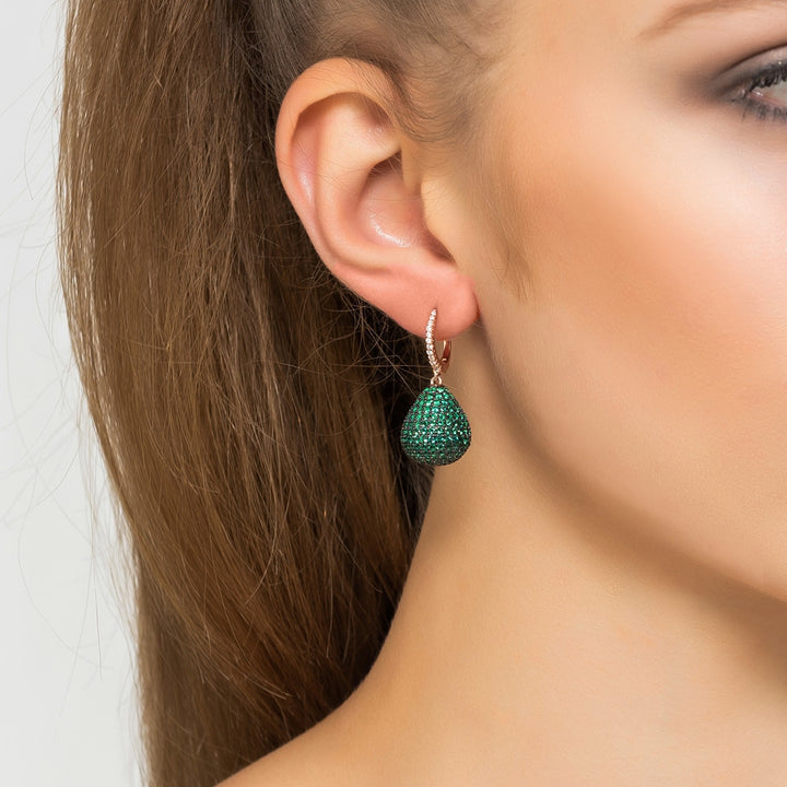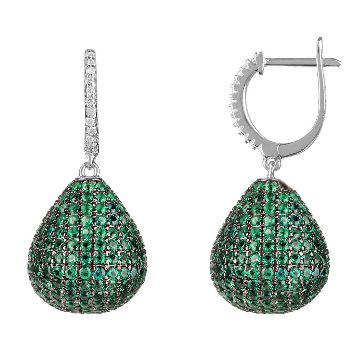 These earrings are handcrafted from 925 sterling silver and are set with Emerald green AAA Cubic Zirconia.