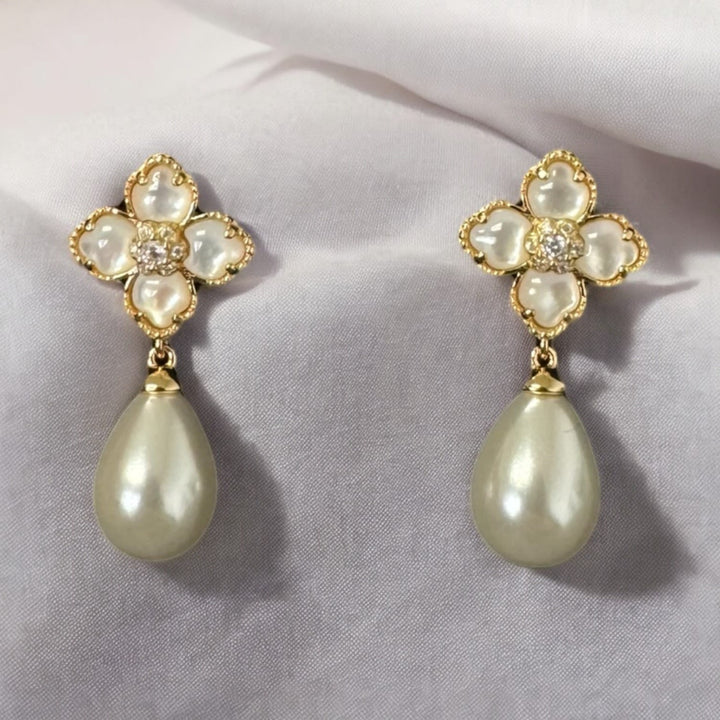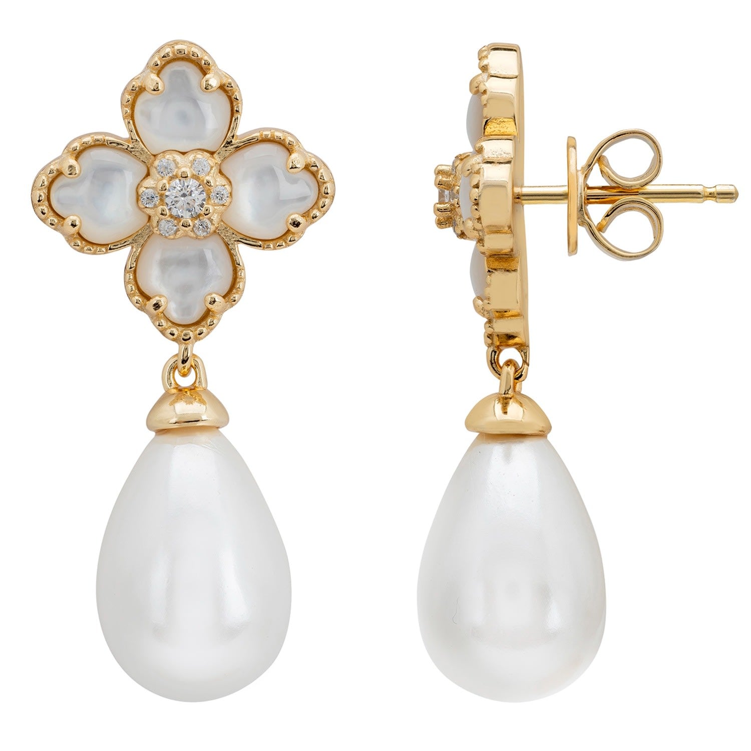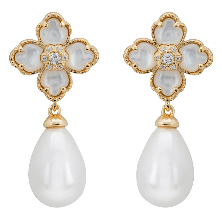 Flower Clover Pearl Drop Earrings Mother Of Pearl Gold