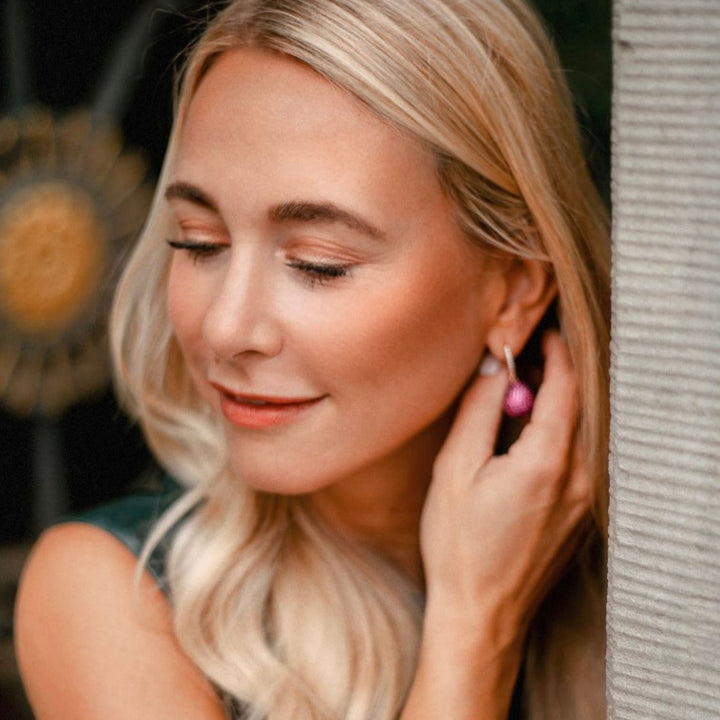 The Valerie Pear Drop Gemstone Earring by Latelita are a brilliant-cut pear drop shaped orb. They are suspended from a zircon adorned creole fastening. These earrings feature an array of sparkling Ruby AAA Cubic Zirconia set in 925 sterling silver and dipped in 18ct rose gold. They are an ideal gift for special occasions and cocktail events.