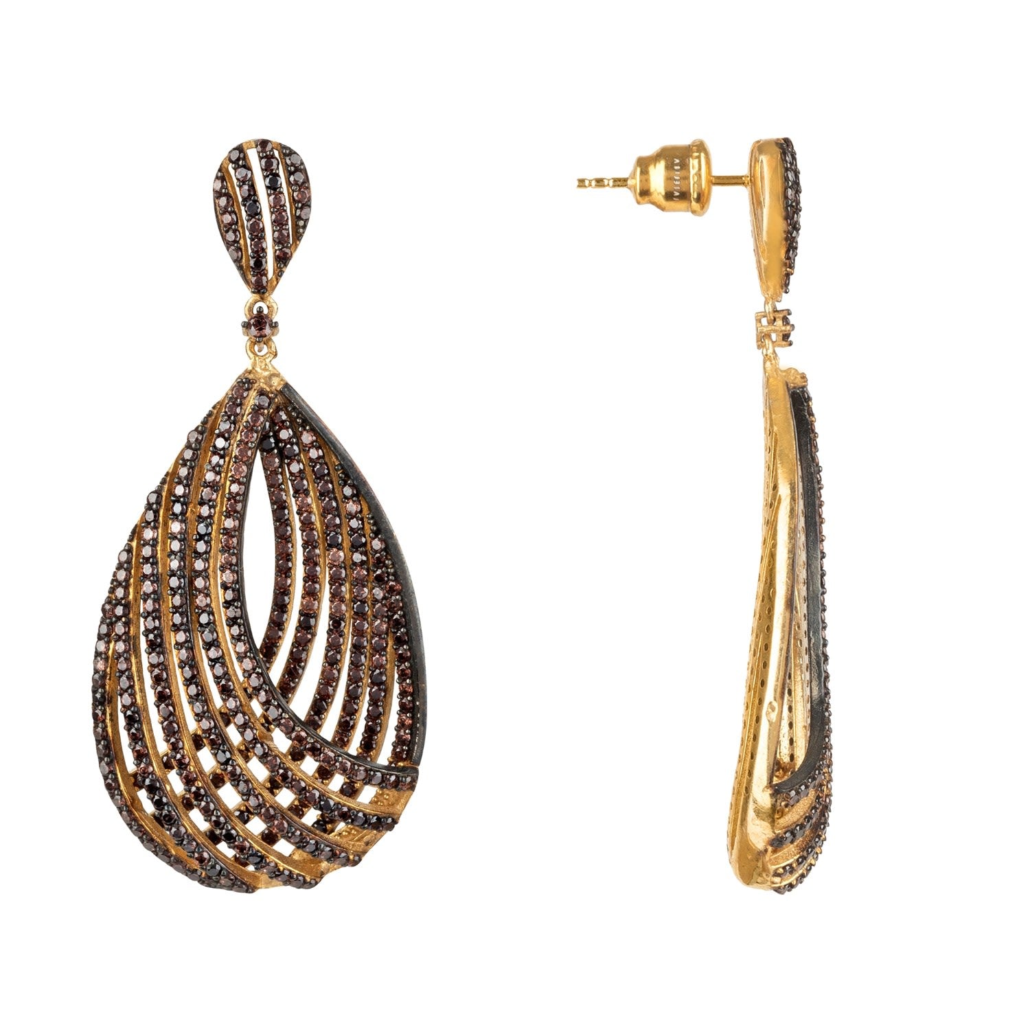 Handcrafted from 925 sterling silver dipped in 22ct gold. They feature handset micro pave AAA-grade chocolate cubic zirconia.