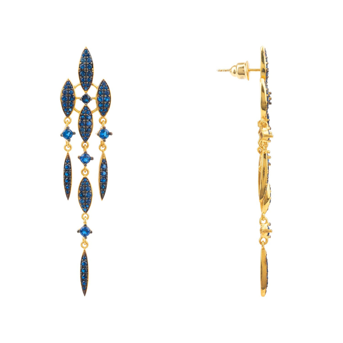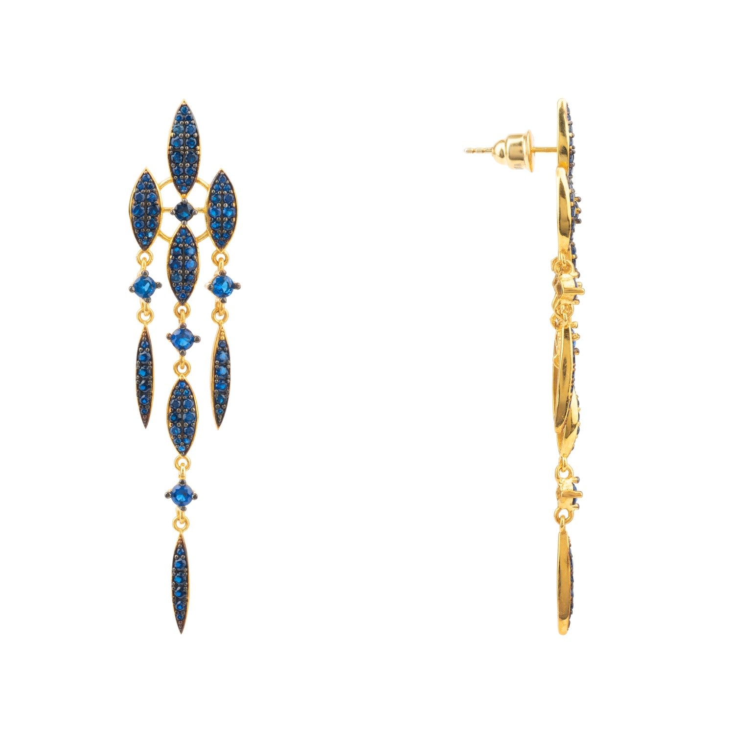 Valencia Statement Drop Earring Sapphire Blue Cz Gold