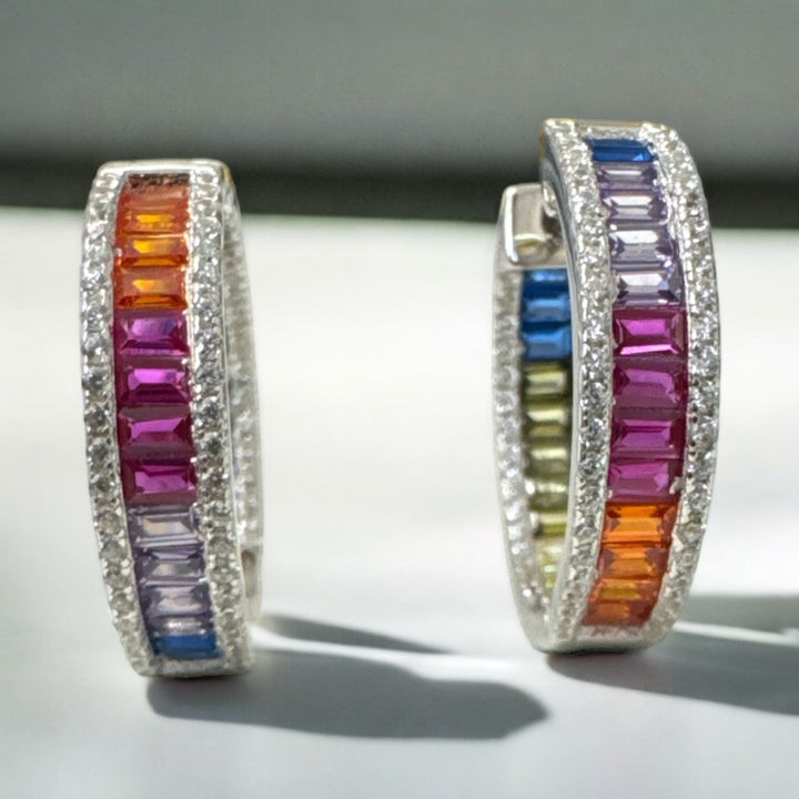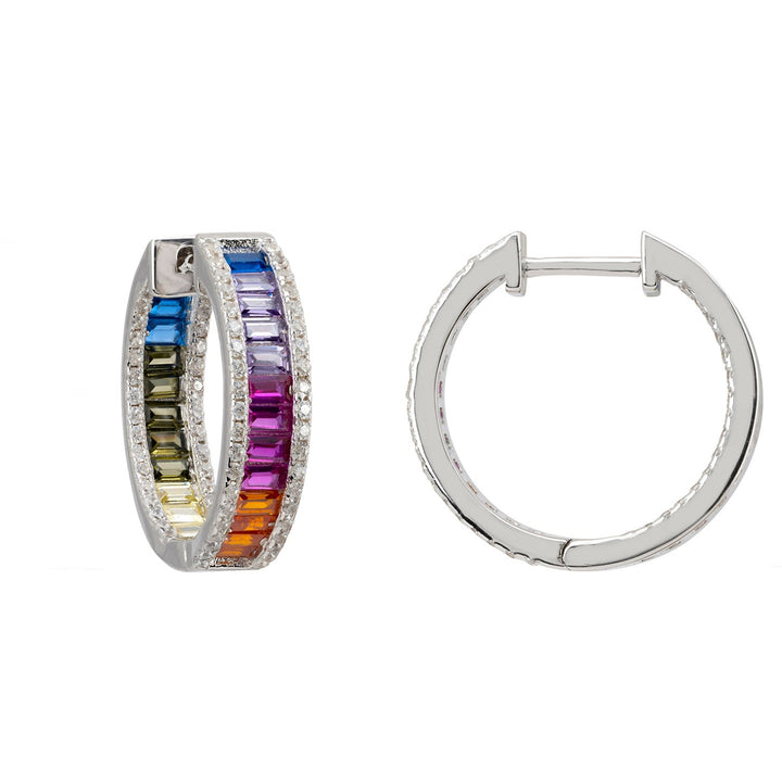 Judy Rainbow Baguette Hoop Earrings Silver