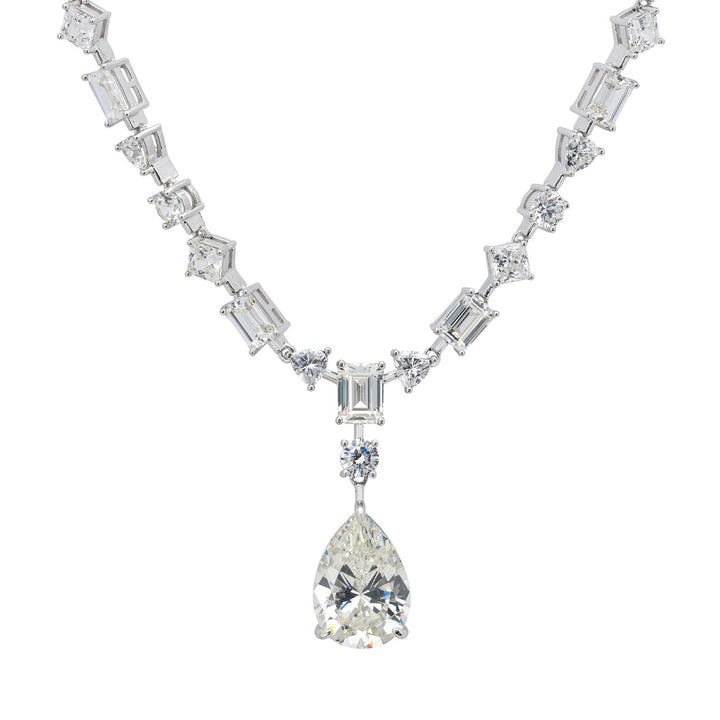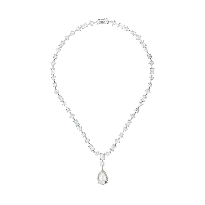 The Ava Moissanite Statement Necklace Silver by Latelita is a stunning masterpiece that exudes elegance and sophistication. The necklace features a brilliant teardrop-shaped moissanite gemstone, surrounded by a cascade of square, rectangular, round, and triangular-cut simulated diamonds. Moissanite, a symbol of brilliance and everlasting love, makes this necklace the perfect choice for bridal jewelry or any special occasion where you want to shine.