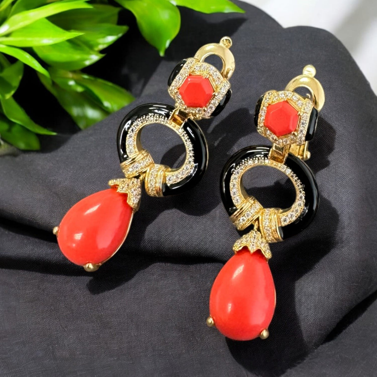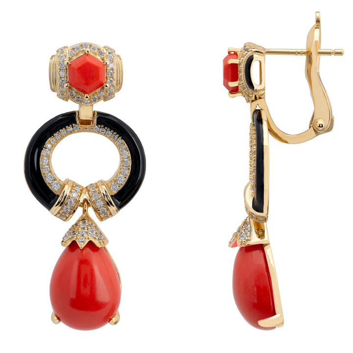 Clara Bow Coral & Enamel Drop Earrings Gold