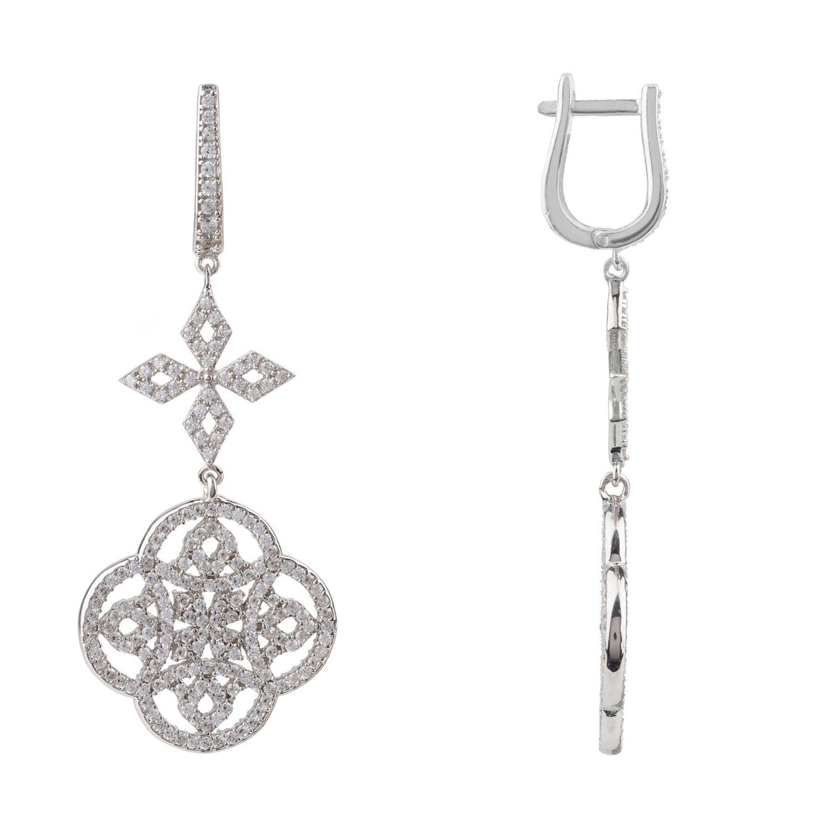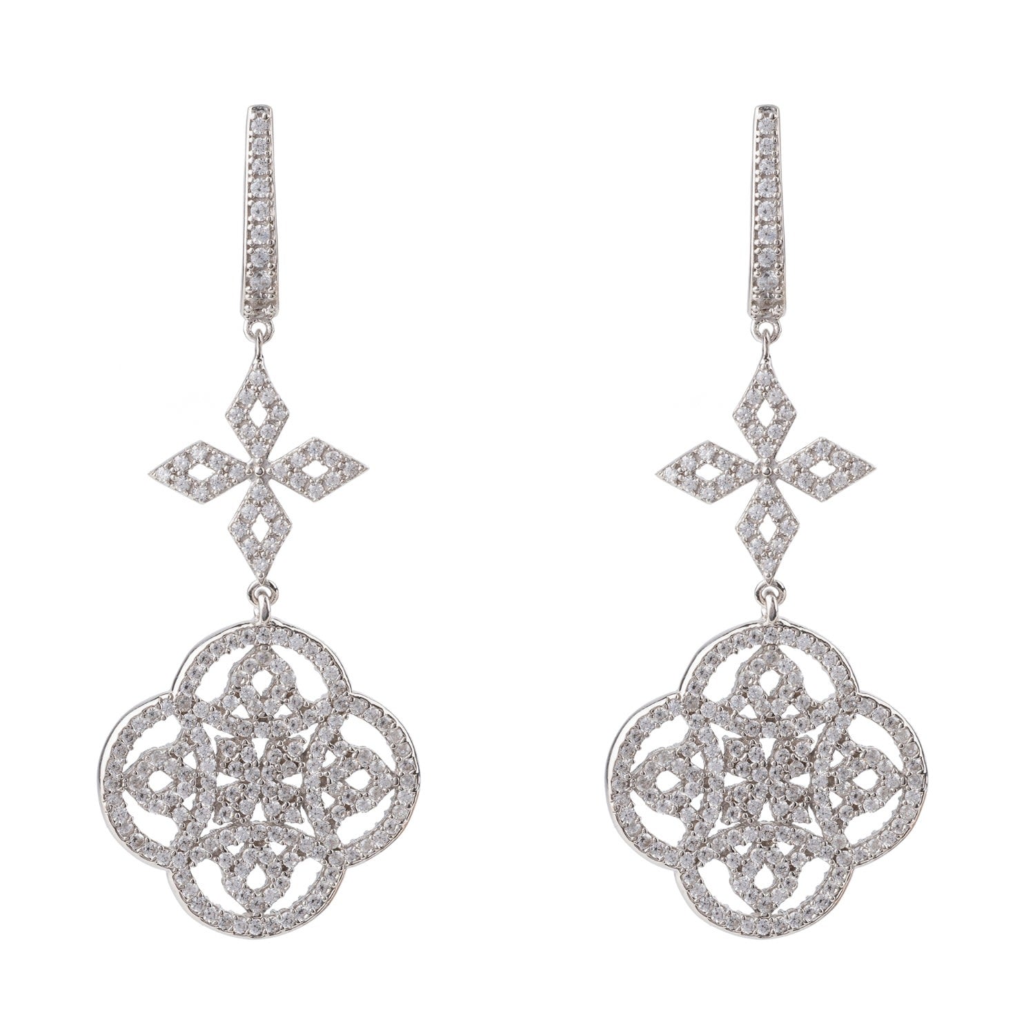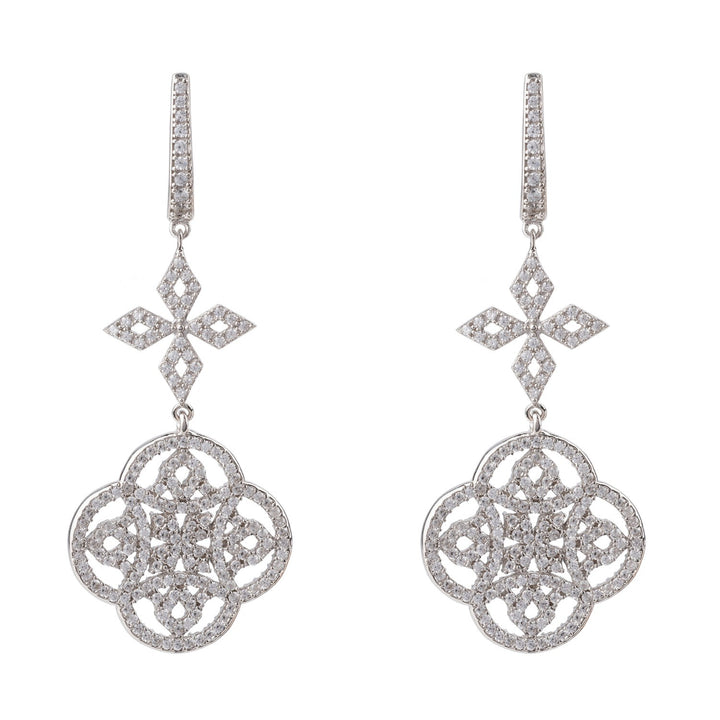 These drop earrings are made from 925 sterling silver and are set with hand-set micro pavé AAA grade white cubic zirconia.