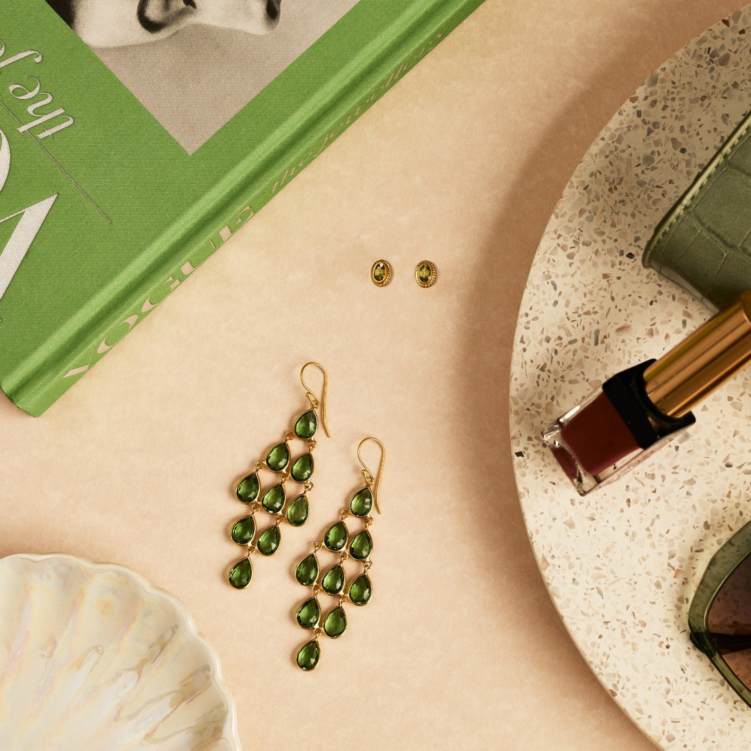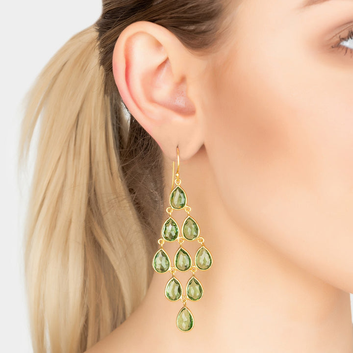 Erviola Gemstone Cascade Earrings Gold Peridot