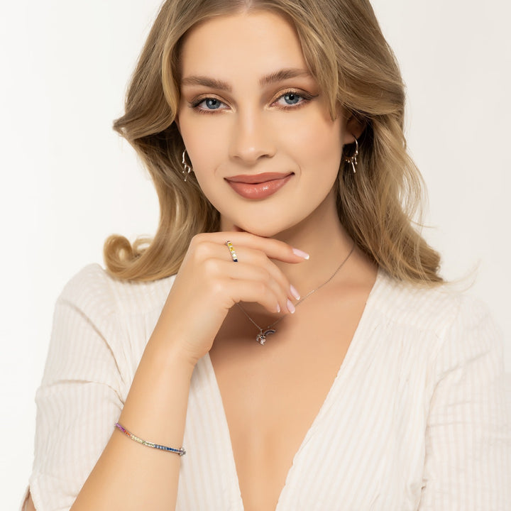 This bracelet is handcrafted from 925 sterling silver and features multicolor cubic zirconia.