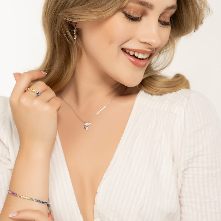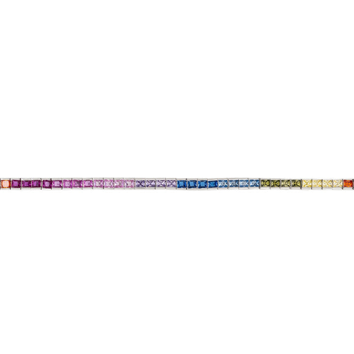 The Over The Rainbow Tennis Bracelet by Latelita is a one-of-a-kind piece that brings a burst of color and brightness to any look. Handcrafted from 925 sterling silver, it's adorned with glimmering square-cut multicolor cubic zirconia that sparkle like diamonds. This vibrant and eye-catching bracelet is made to last and is perfect for adding a touch of fun and confidence to your daily adventures.