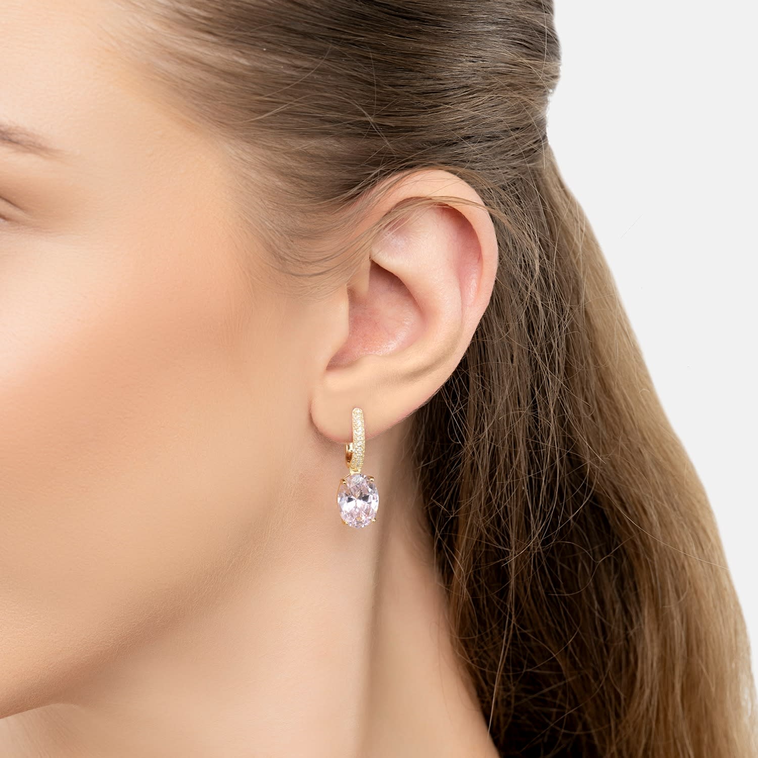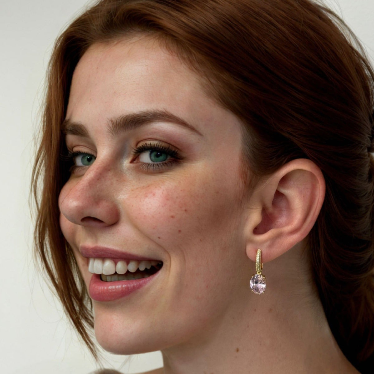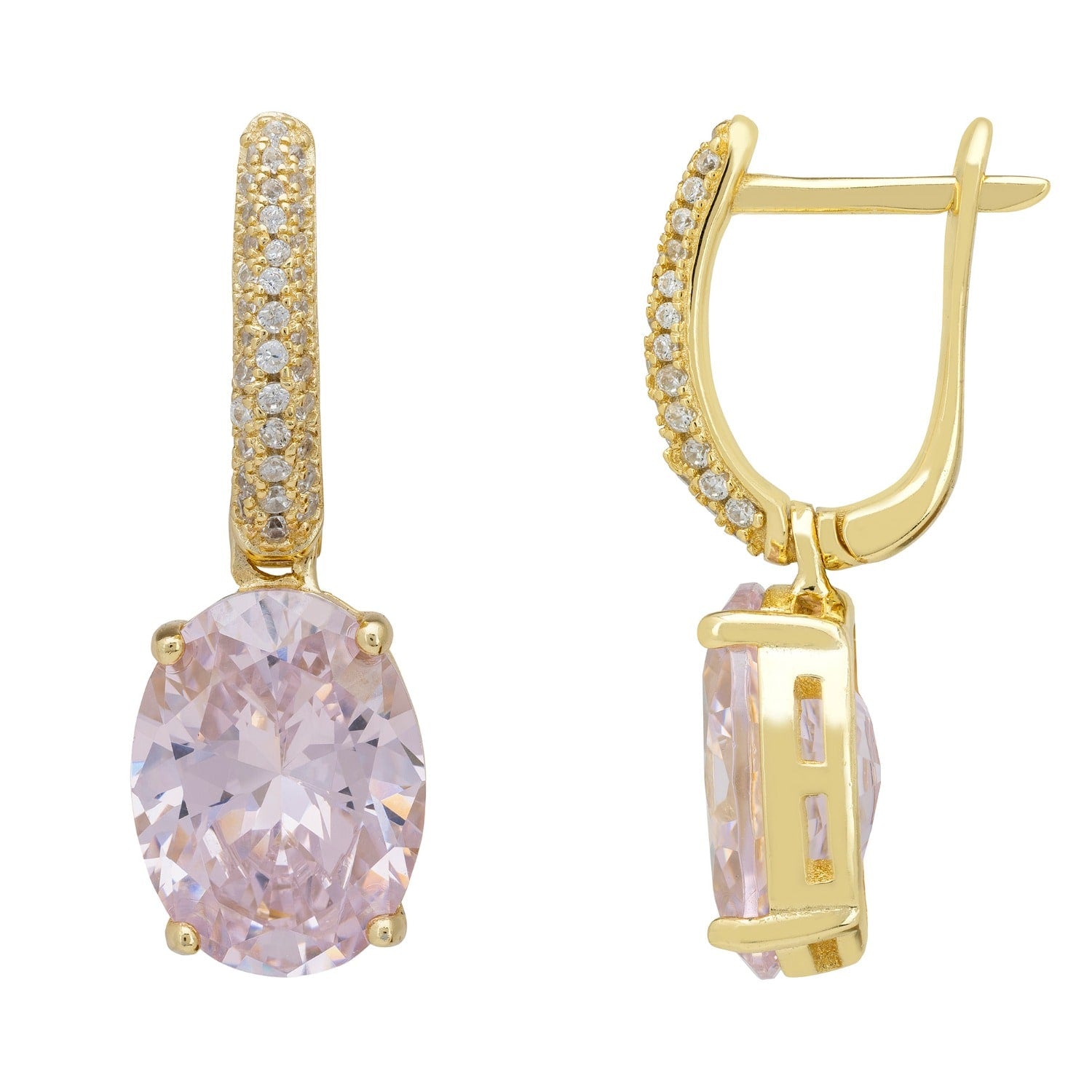 These Alexandra Oval Drop Earrings by Latelita are a gorgeous and elegant piece that adds a touch of color and sparkle to any outfit. The handcrafted earrings feature a beautiful lab-created morganite gemstone and simulated diamonds along the latch closure, creating a stunning visual interest. The morganite is believed to bring healing, compassion, and unconditional love. These earrings are perfect for adding extra glamour to both everyday looks and special events.