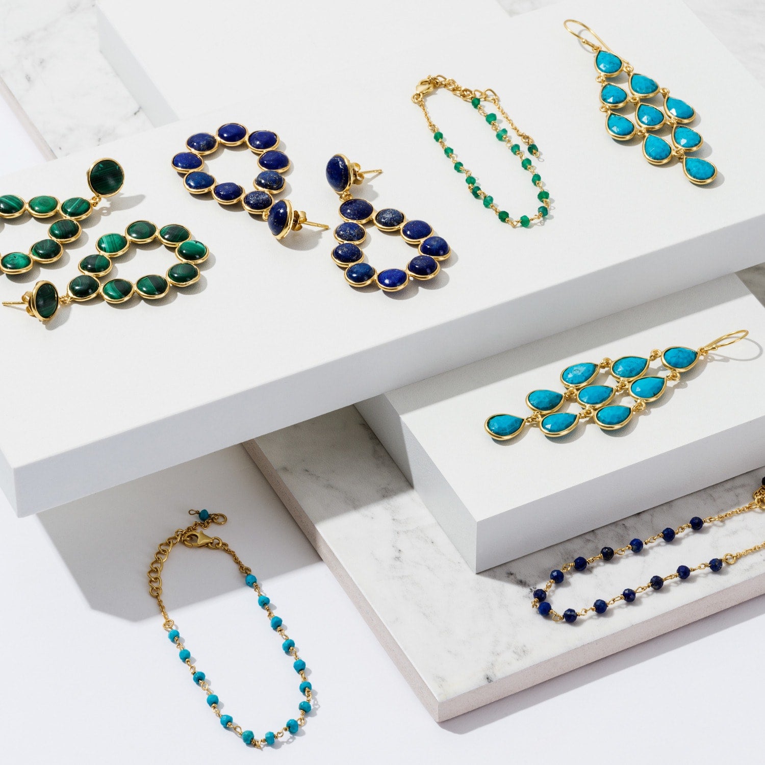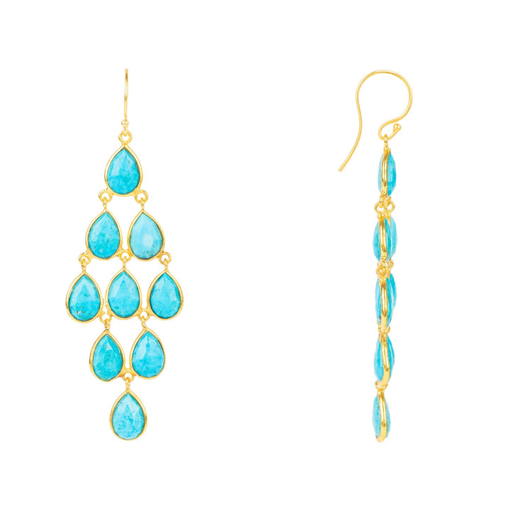 Erviola Gemstone Cascade Earrings Gold Turquoise
