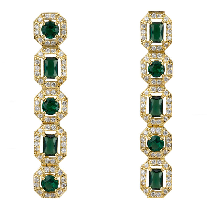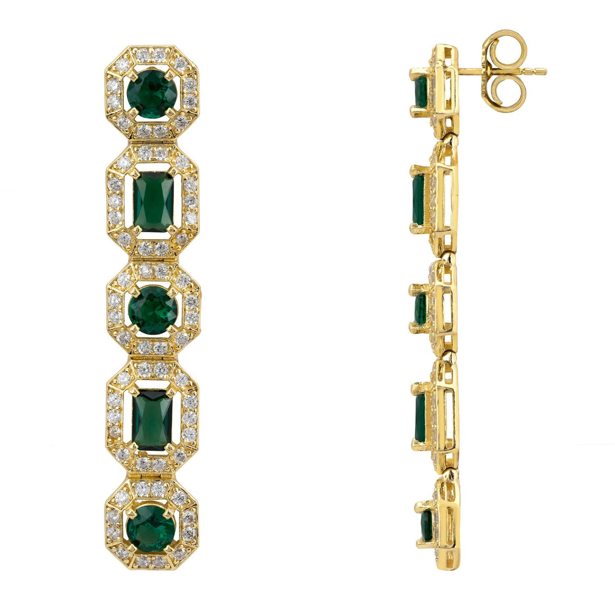 These earrings are handcrafted from 925 sterling silver dipped in 22ct gold and feature lab-grown emeralds and cubic zirconia.