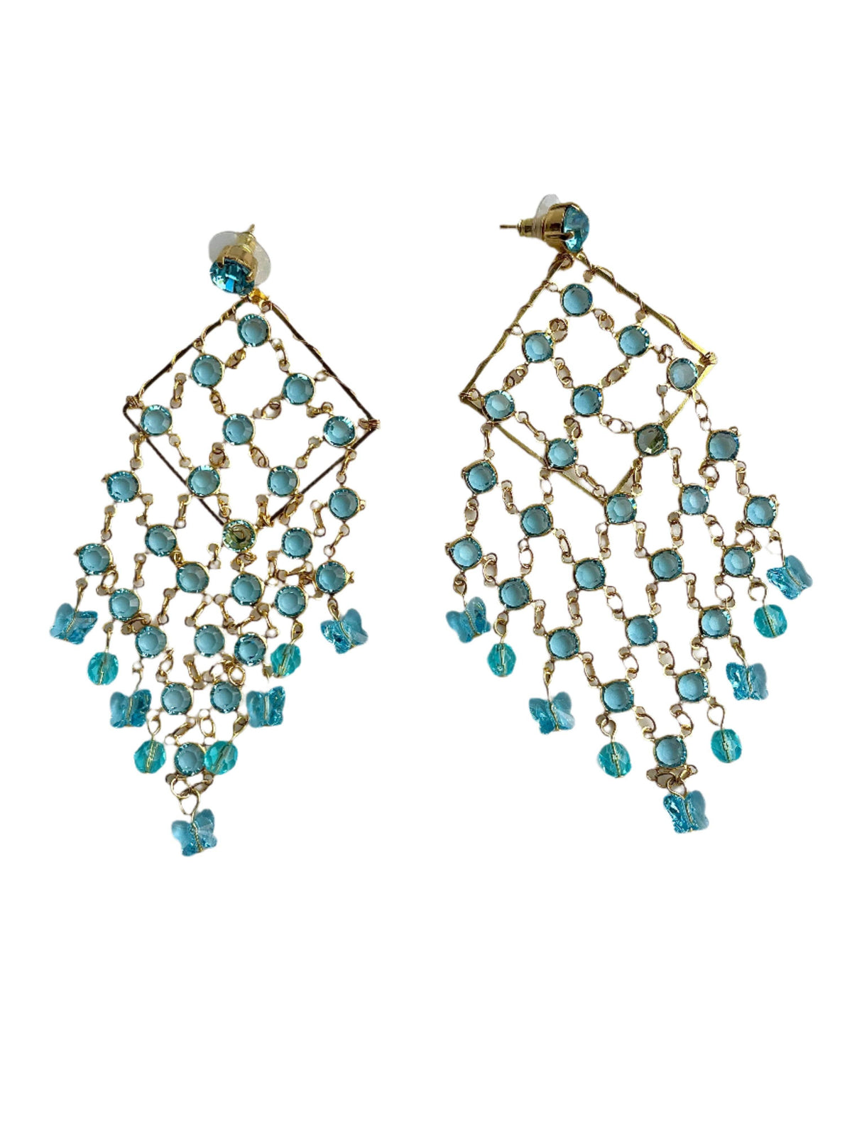 Light Blue Crystal Butterfly Chandelier Earrings
