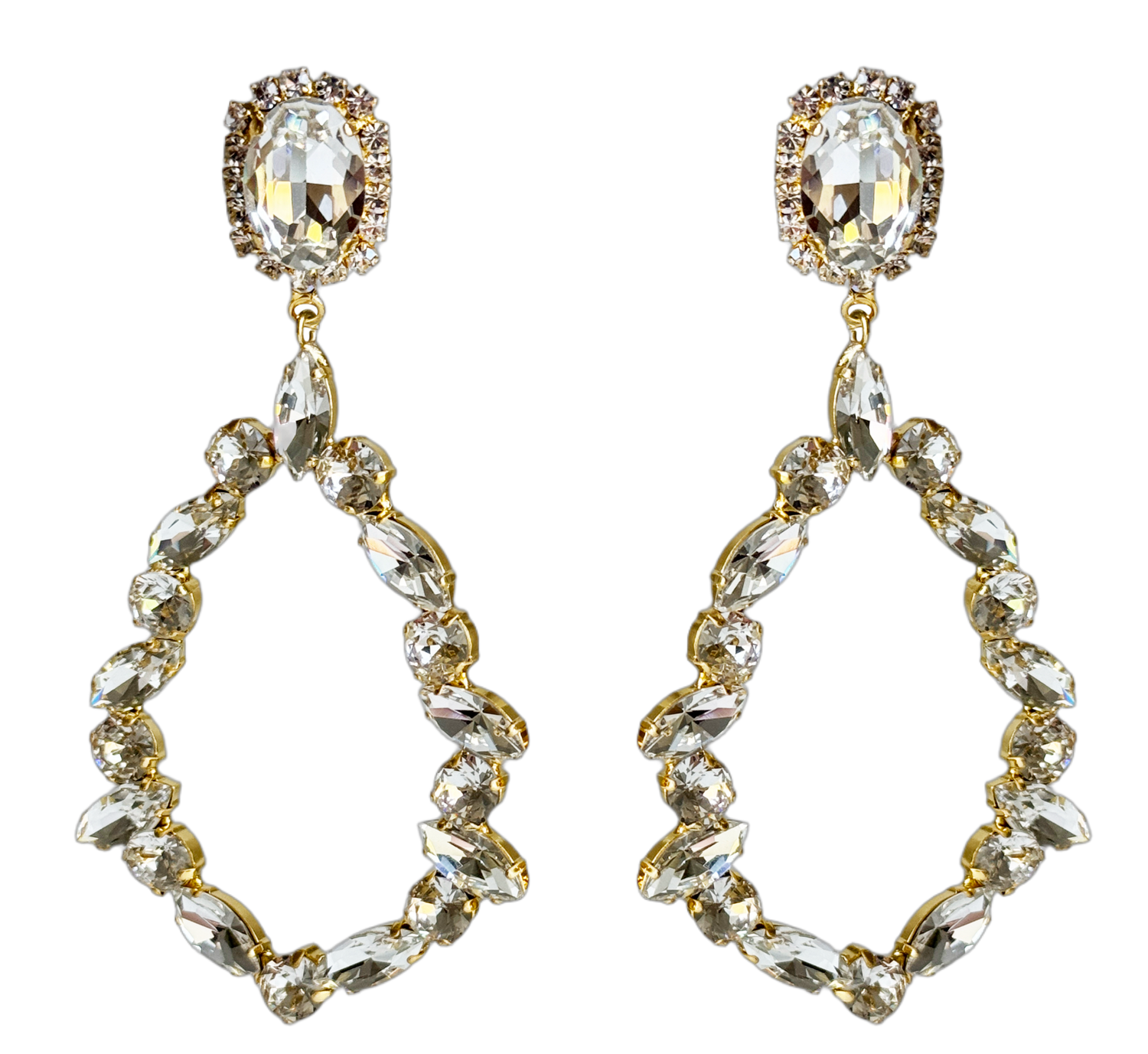 These chandelier earrings are crafted from 24k gold plate over brass and feature Czech crystal. The posts are hypoallergenic. They can be gently cleaned with a microfiber cloth.