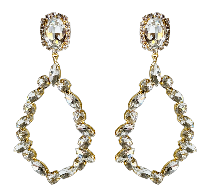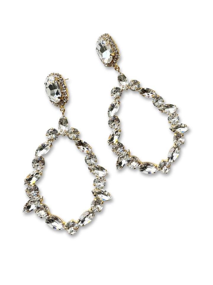 These Diamond Crystal Chandelier Earrings by Laura Gray are a luxurious and glamorous accessory. The earrings are handmade in Athens, Greece, and are crafted from high-end Czech crystal and 24k gold plate. They are lightweight and comfortable to wear all night, and are perfect for a special event or holiday party.