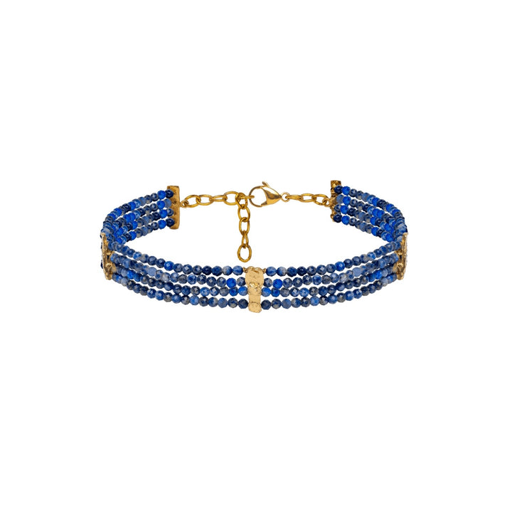 This handcrafted choker is made with natural and semi-precious blue stone beads. It is hypoallergenic and nickel-free.